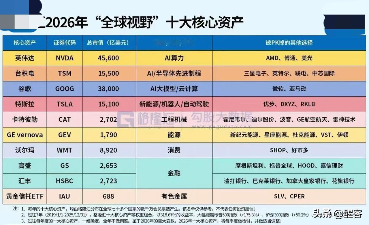 2026年"全球视野”十大核心资产名单&全球视野,下注中国"十大核心ETF和港股科技ETF。尤其是港股科技ETF在经过2025年下半年持续调整之后,当前处于相关低位,随着2026年AI应用的爆发,预计港股科技将有着不错的表现。
