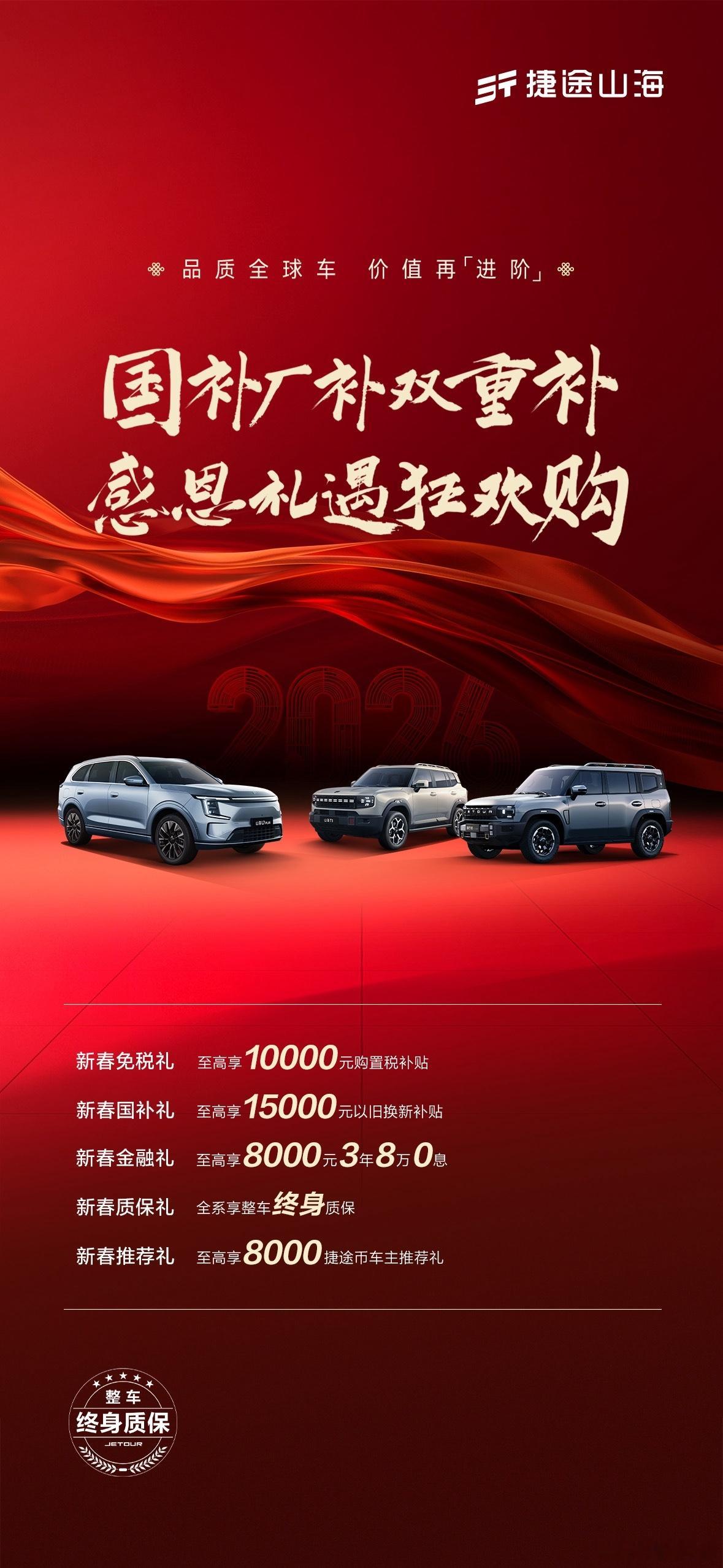 捷途全系新年政策来啦购车礼遇叠加国补,一步到位新年共捷途,山海启新程捷途汽车捷