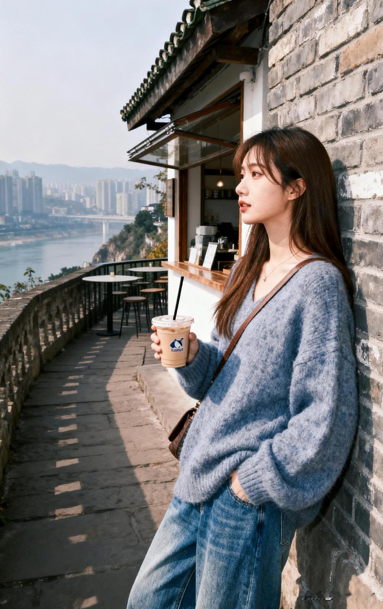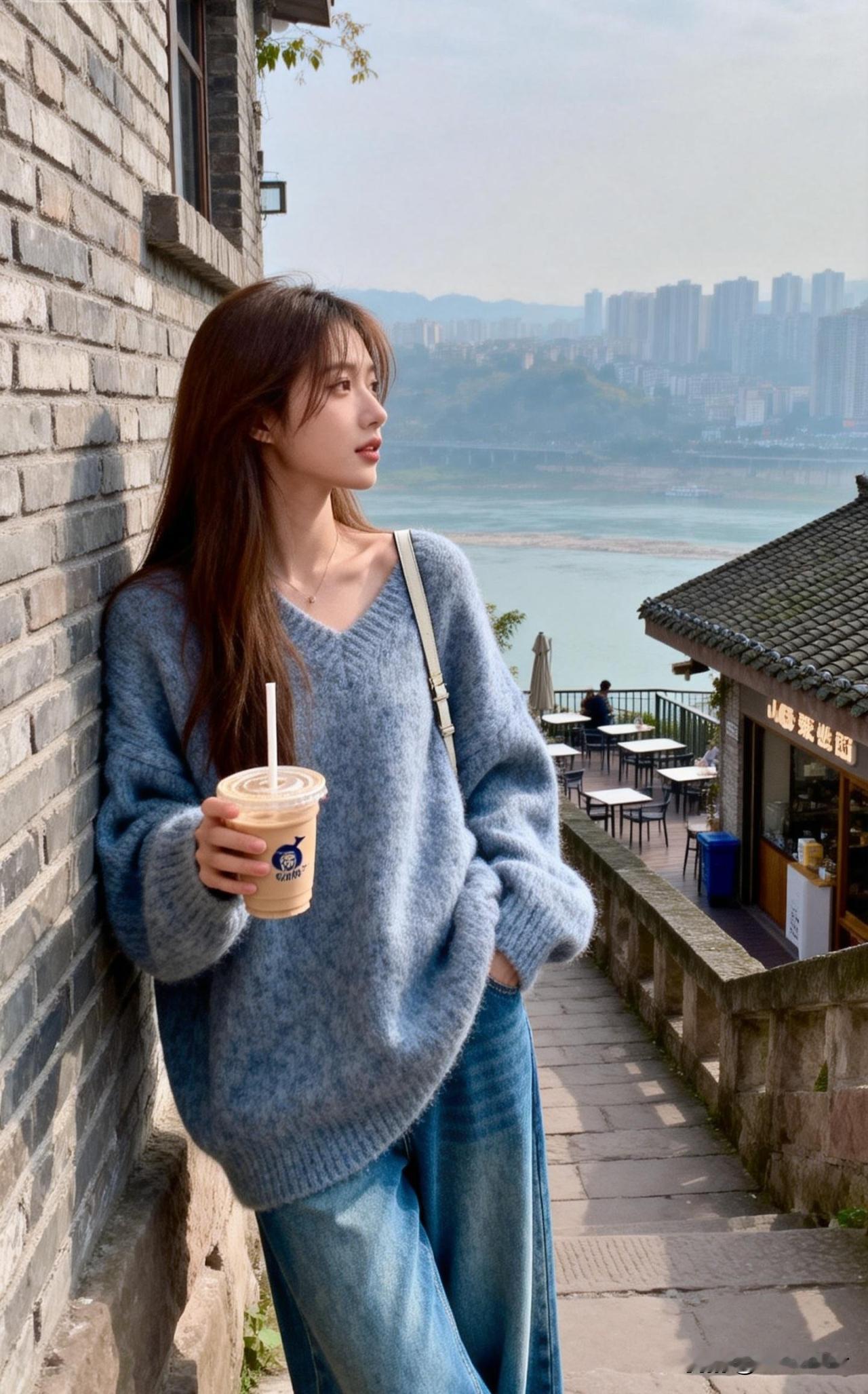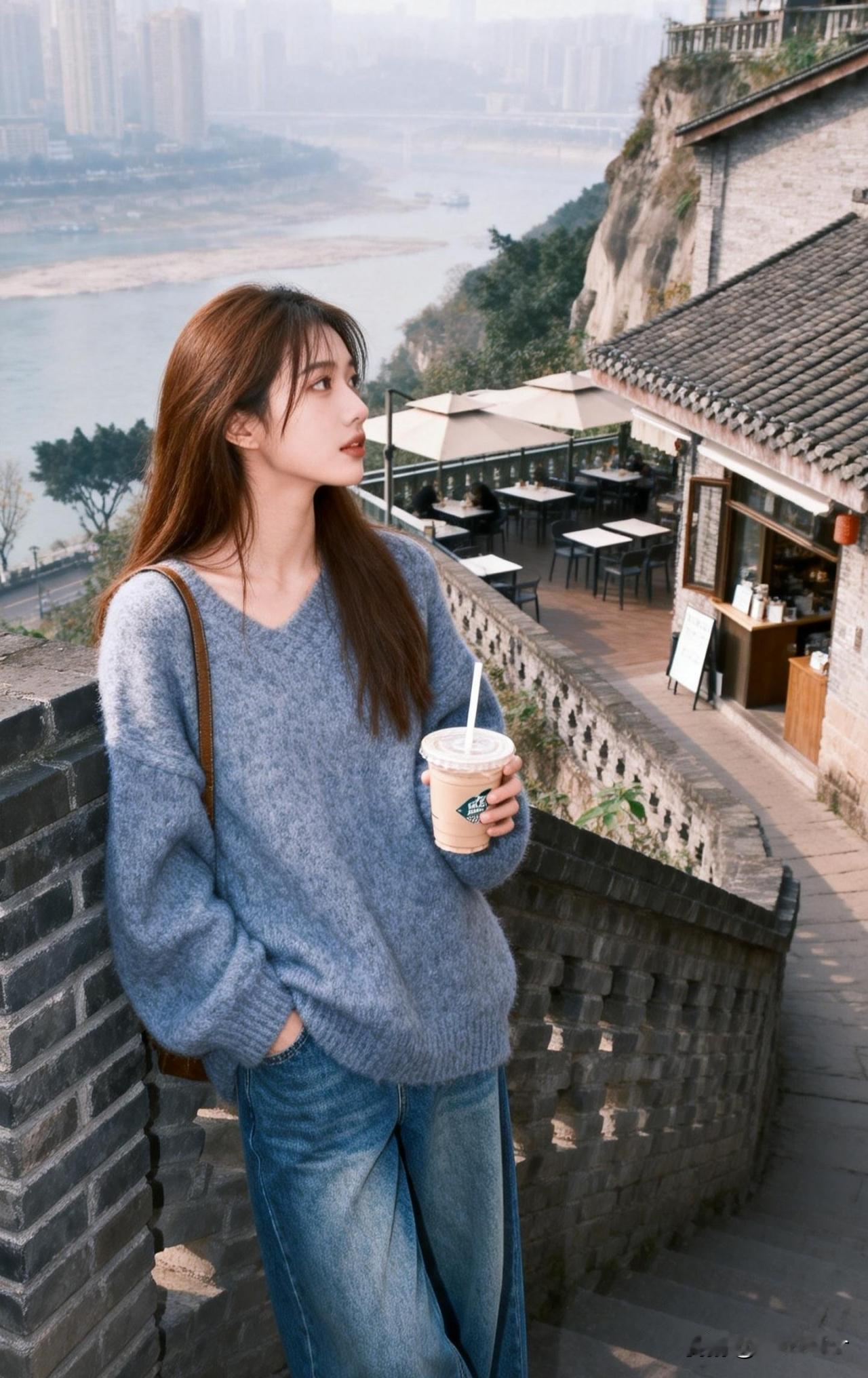 冬日暖阳下的甜美少女,白色毛衣与蝴蝶结发饰的完美搭配,让人心旷神怡。🌞💖