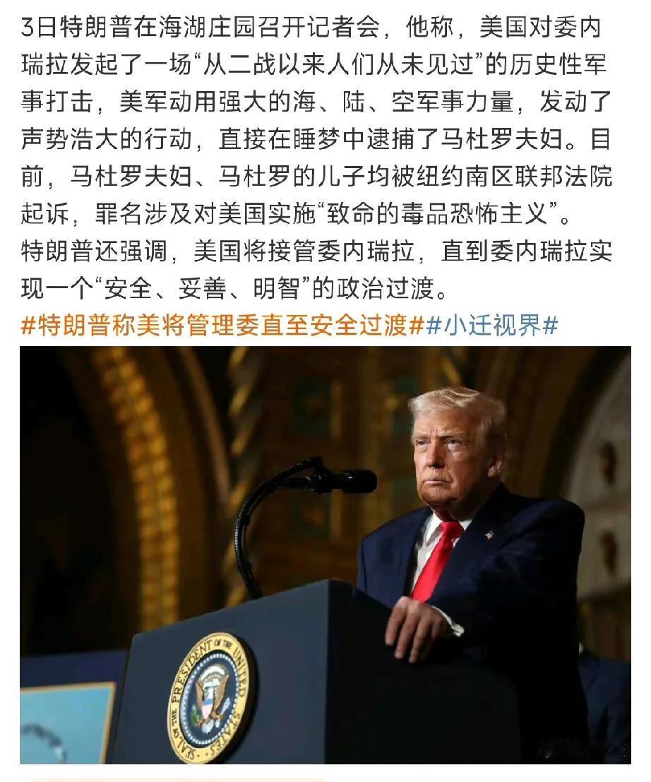 美国政府自2025年1月20起干了这么几件事: 第一件 抢劫 抢劫丹麦格陵兰岛; 第二件 绑架 绑架委内瑞拉总统马杜罗和妻子; 第三件 分赃 分赃乌克兰矿产资源; 第四件 把墨西哥湾改名美国湾。 顺便说一句,美国给马杜罗一家子定的罪是“致命的毒品恐怖主义”。