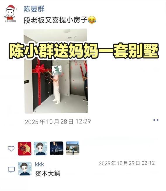 陈小群新年提新车了!近日,知名游资陈小群发朋友炫耀,称第一眼就爱上,不要太帅气,很快就有人认出,他分享是一台奔驰GT63S,还发了四张照片,对于几十亿的大佬,两百多万的车子确实不贵,评论区有人说,每个男人都绕不过的GT63S,那陈小群买的算是晚的,毕竟他还有好几台豪车! 早在十月,陈小群就给妈妈买了一套新房子,他晒出25年的交易,收益率高达2000多倍,赚的全是散户的钱吧,有了席位溢价,买什么第二天都涨停,有的甚至顶一字板,怎么能不赚钱,大家怎么看?