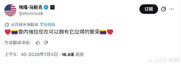 这次突袭委内瑞拉,马斯克很开心,连发动态 刚才发错了,重发