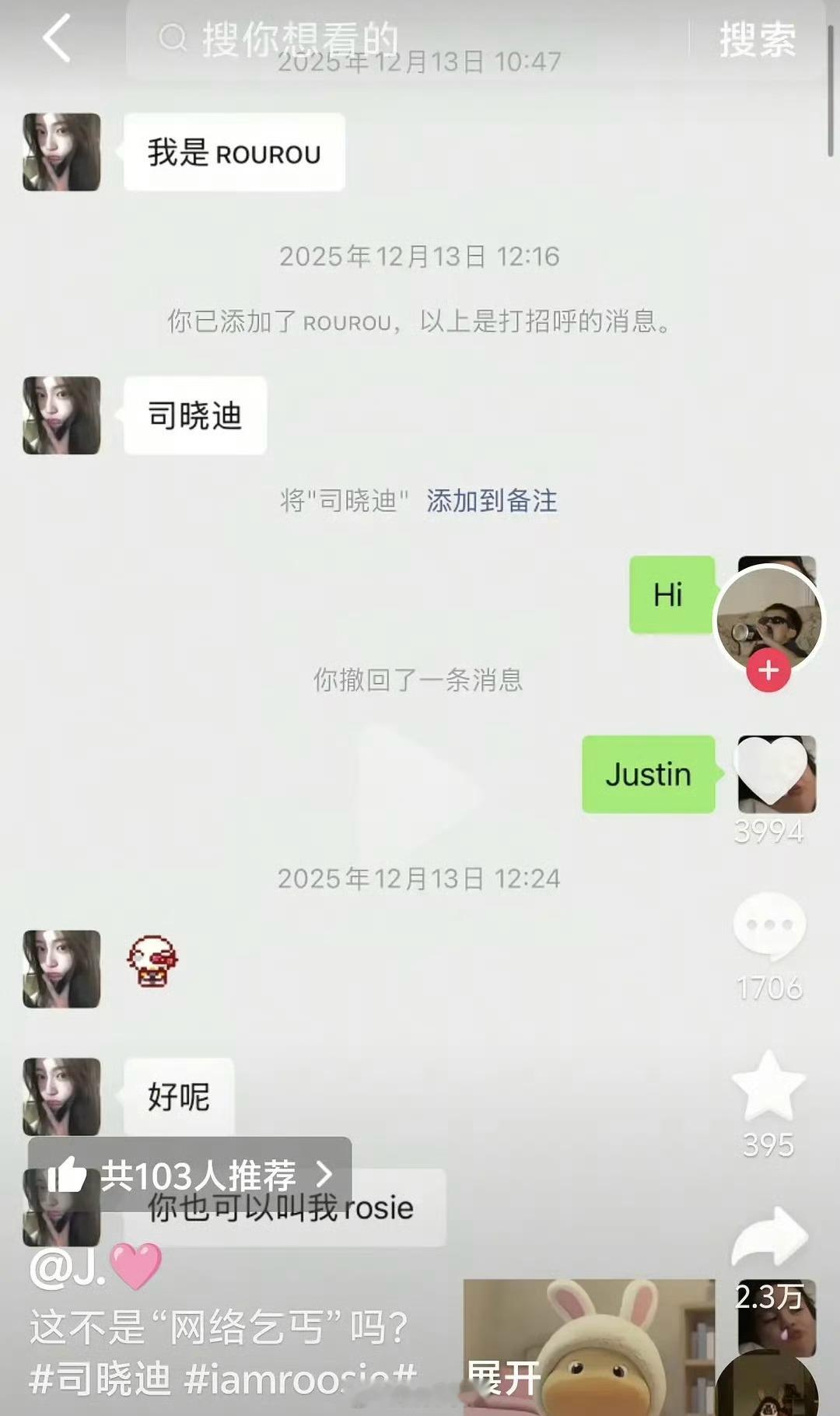 司晓迪被反锤,自己要飞去找别人玩,还要别人报销。之前她发和屈楚萧的聊天记录,也找