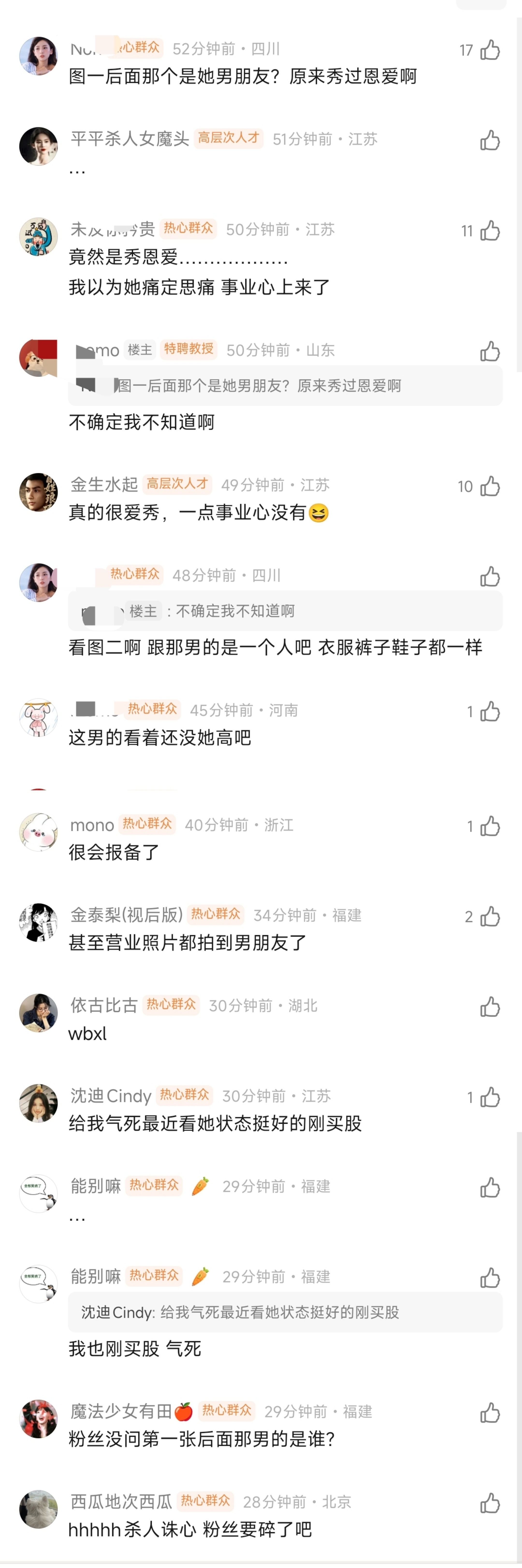 向涵之粉丝都在要她今天尽快分手...还有粉丝在她评论区说谈恋爱可以不要这个又矮看着还没有她高的还有网友发现她冬至那天微博营业的穿搭是约会被拍到的那套...