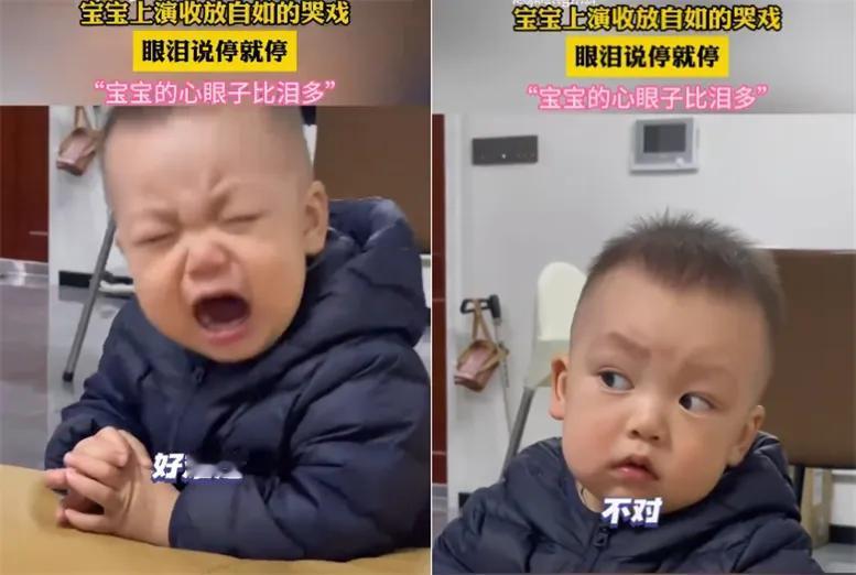 这孩子将来是块当演员的料! 看到这个视频,差点没把我笑岔气。一个妈妈在屋里录自家儿子,小家伙戏瘾上来了。 只见他整个人趴在桌子上,小肩膀一耸一耸,抽抽搭搭的,哭得那叫一个投入,不知道的还以为受了天大的委屈。 哭了半天,估摸着该有人来哄了。他悄咪咪把眼睛睁开一条缝,斜着往旁边一瞟,好嘛,屋里安安静静,根本没人看他。 哭声就像被掐了开关,“嘎”一下就停了。 他抬起头,俩大眼睛清亮亮地转来转去,左看看右看看,小脸上全是疑惑,仿佛在说:“我演这么卖力,观众呢?” 镜头拉近,眼角干干净净,半颗泪珠子都没有。 评论区都乐翻了,有网友一语道破:“这心眼子,比你的泪珠子可多多了。” 现在的小孩,真是聪明得让你没脾气。 你说他不懂吧,他都知道用“哭”来达到目的; 你说他懂吧,那点小心思又全写在脸上,一眼就能看穿。 话说你见过这种“雷声大,雨点小”的表演吗?