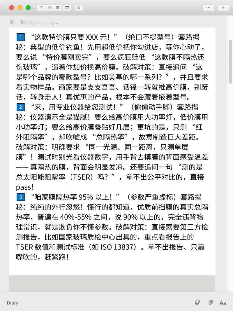 警惕!这 5 句贴膜话术全是套路,别当冤大头 贴膜最怕遇到 “话术大师” 商家!只要听到下面这 5 句话,别犹豫,赶紧溜,每一句都是精心设计的套路!【来自懂车帝车友圈】