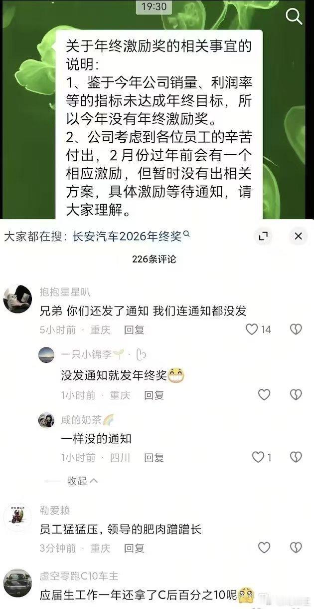 长安的朋友们是不是两个消息结合起来看心情更不好了?销量新高,年终奖新飞,往年年底就发了