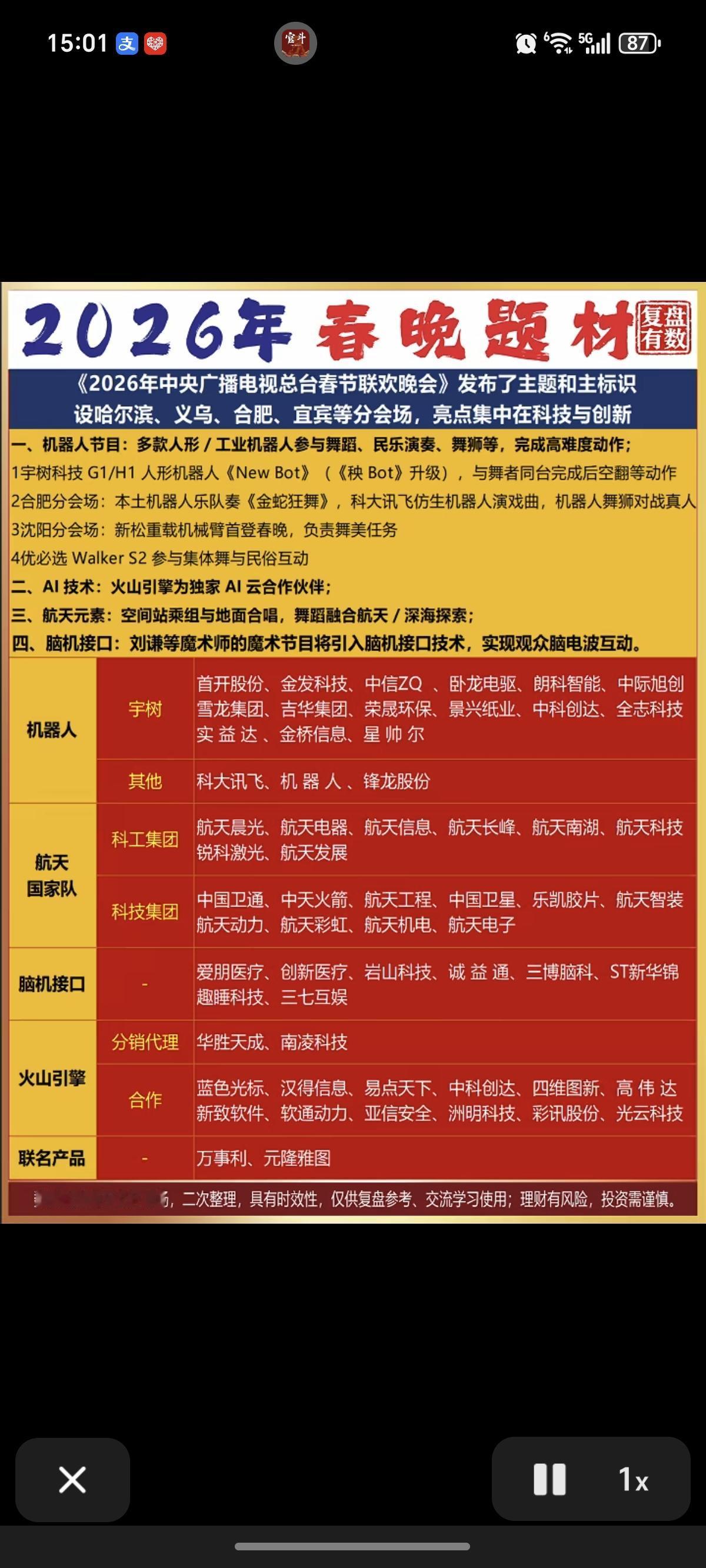 2026年春晚:关联题材! 1.机器人 2.智能AI技术 3.航天元素 4.脑机接口