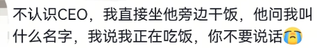 不认识CEO,我直接坐他旁边干饭,他问我叫什么名字,我说我正在吃饭,你不要说话