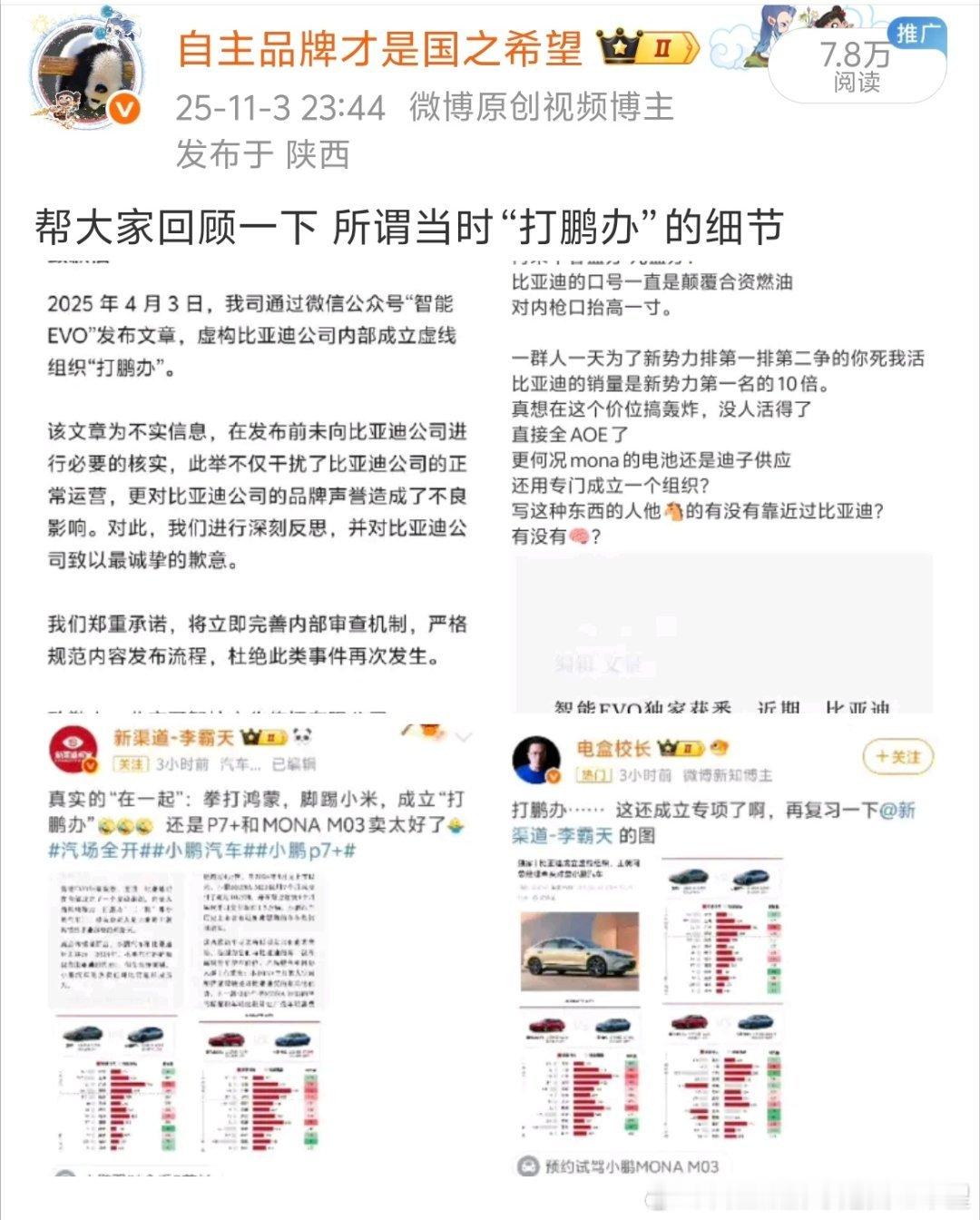 电盒校长和李霸天回应榜单开除方程豹结果两个人的说辞互相矛盾 该信谁的?一个说 就是单纯的忘记了另一个说是因为方程豹没有公布年度目标员工和老板颗粒度没有对齐啊可是你们看看你们在说什么?别人说忘了方程豹 我能信一半嘟嘟说忘了方程豹 大伙儿能信一个字?你们两个号之前造谣比亚迪有 “打鹏办”不是我挖出来,你们一直如同失忆一样,能想起来道歉?关注比亚迪都关注到这么细节,一点谣言出来第一时间跟进煽风点火。现在被抓包又再次上演失忆的戏码,中单乐芙兰六级大招 故技重施?方程豹并不在乎被某个榜单开除甚至在我看来 你们的榜单开除方程豹反而是符合逻辑的,这就是认知战的一部分,大家心照不宣的,我发也就图一乐,真的。所以 既不用解释 也不用再刻意加进去这次的解释更是越描越黑最后善意的提醒“引证内容涉及销量 销售额 市场占有率等事实信息,应当 真实 完整 准确”做不到真实 完整 准确你们的榜单就没有引证价值,只能自high。