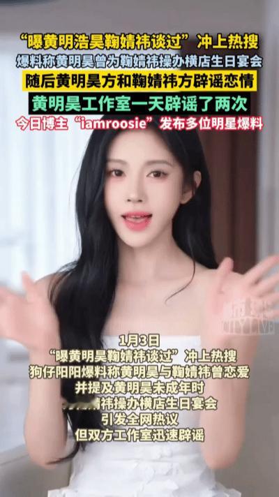 今日瓜速报:“黄明昊鞠婧祎谈过”空降热搜,狗仔爆料称黄明昊未成年时为鞠婧祎操办横店生日宴。但双方工作室迅速辟谣,黄明昊方一天两次否认,强调爆料无稽之谈并走法律程序。目前爆料内容已被删除,吃瓜需谨慎!