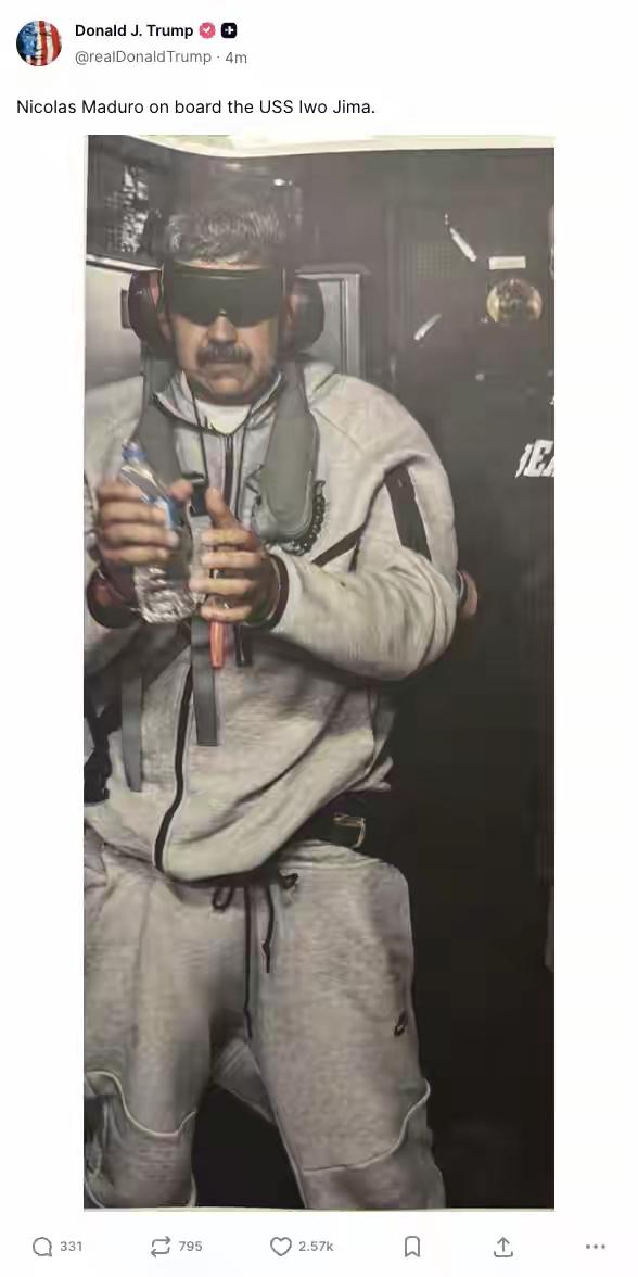 美国人还是动手绑架了距离美国4500公里以外的委国总统马杜罗! 不要相信美国人的鬼话,民主就是美国的民主,而你和美国交朋友只能是奴隶的地位,自由是美国人民的自由,你只能是被奴役被掠夺被虐杀的权利。尽管委内瑞拉是一个已经独立了200多年的国家,是一个在联合国有合法席位的国家,一个面积91.6万平方公里的国家,人口接近3000万的临海的南美洲国家。这样的国家的领导人夜里正在床上睡觉,就连夜被炸开大门,抬走运往美国,这个过程不就是绑匪的行径吗? 而这个绑匪集团的总指挥就在现场不远的军舰上亲自策划,批准,指挥,目睹了整个行动过程。 他们没有因为自己的对别国的侵略而羞耻,而是引以为荣的公布了他们的犯罪画面,引以为傲向世界展示他们的军事能力。 他们为什么要绑架马杜罗?这一点他们还是稍加掩饰的,说是贩毒和恐怖主义,但是司马昭之心路人皆知,他们就是奔着委内瑞拉的石油去的。 第一要掠夺委内瑞拉的石油资源,要将这些资源据为己有。第二要绑架马杜罗,因为他是反对美国的主要政治人物,杀一儆百,就是要给那些不接受美国的奴役的国家进行震慑,恐吓。 为了攫取更大的经济利益和政治利益,这就是马杜罗被绑架的真正的唯一的原因。 至于国际法的规定,至于吃相难看,美国人会在意吗?