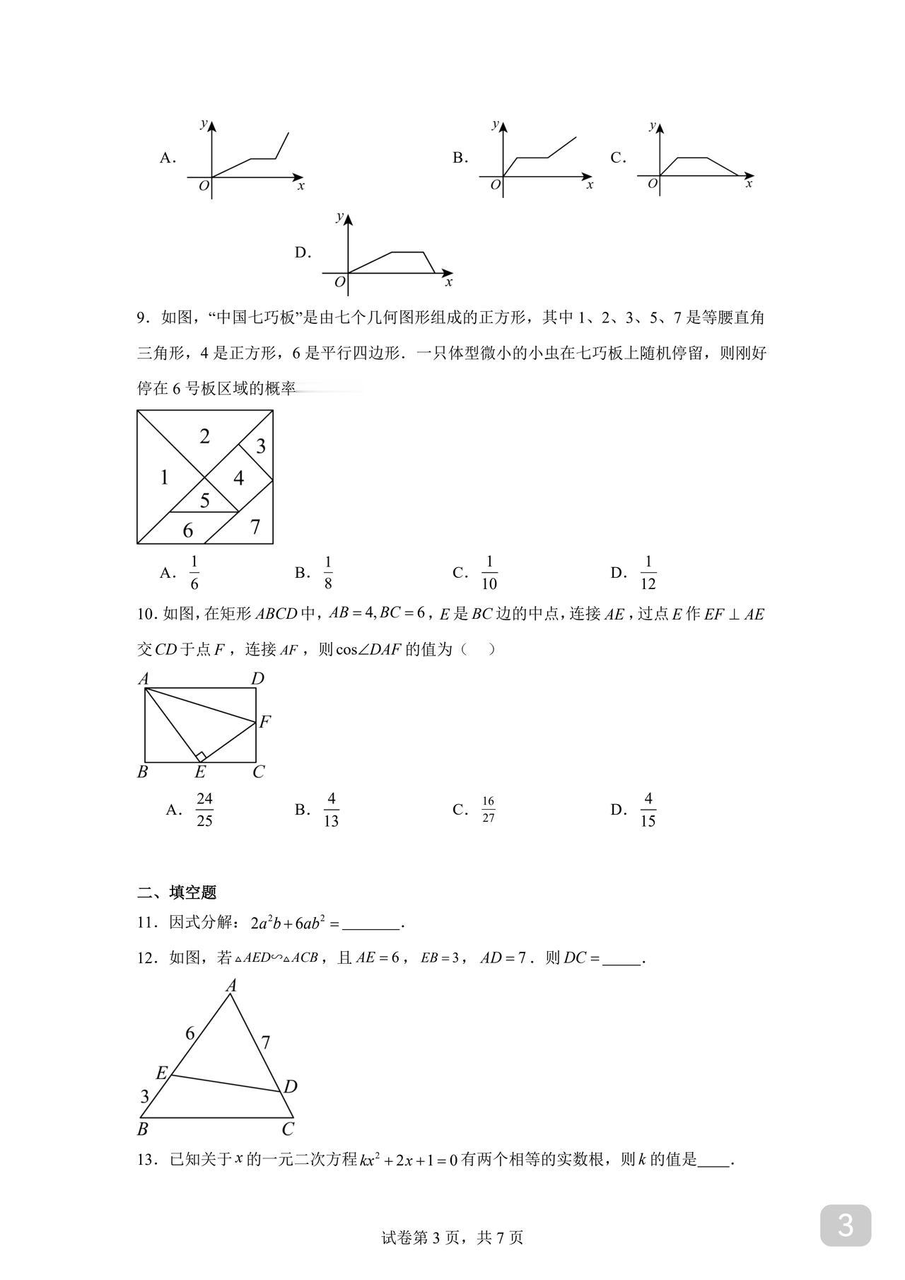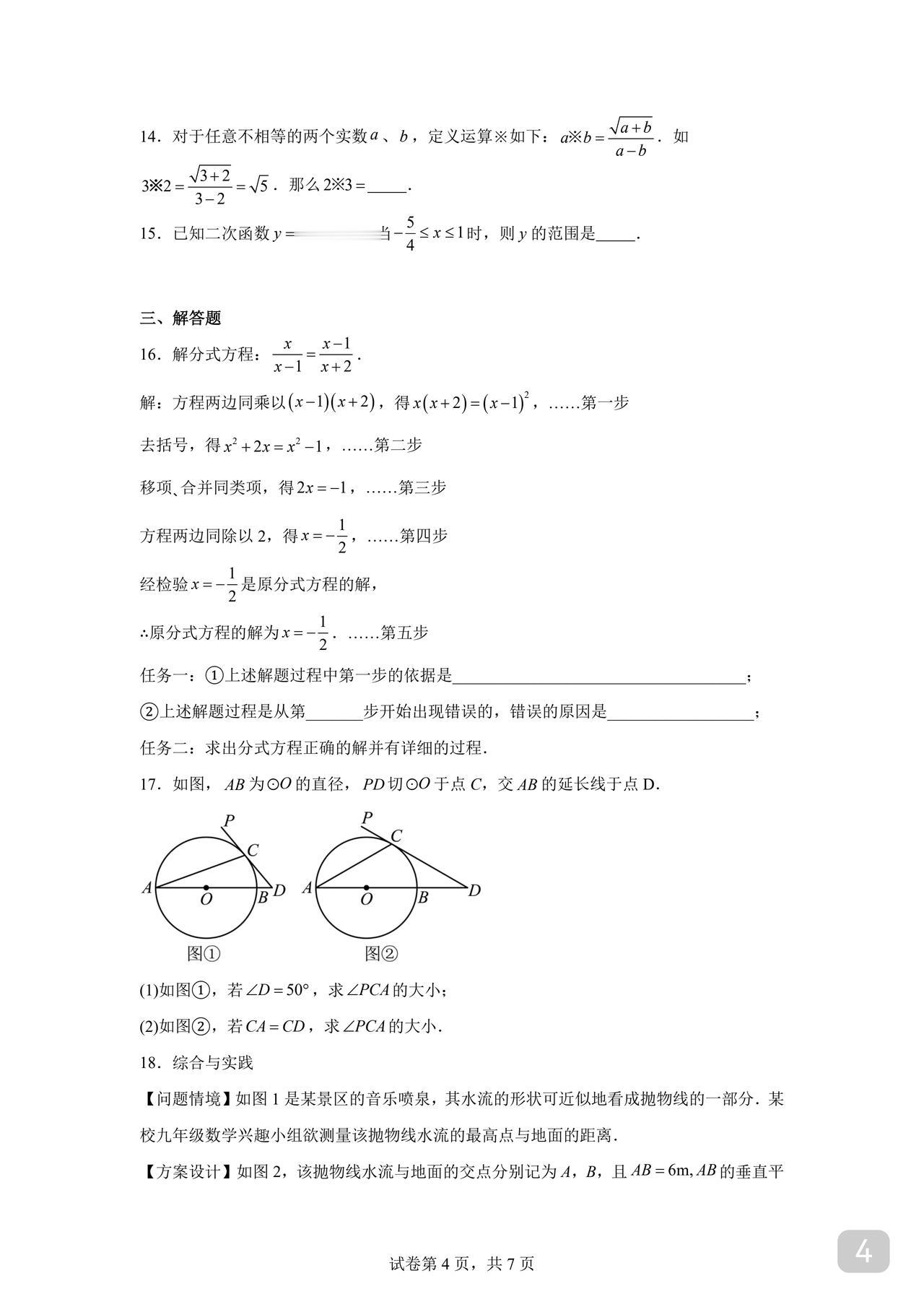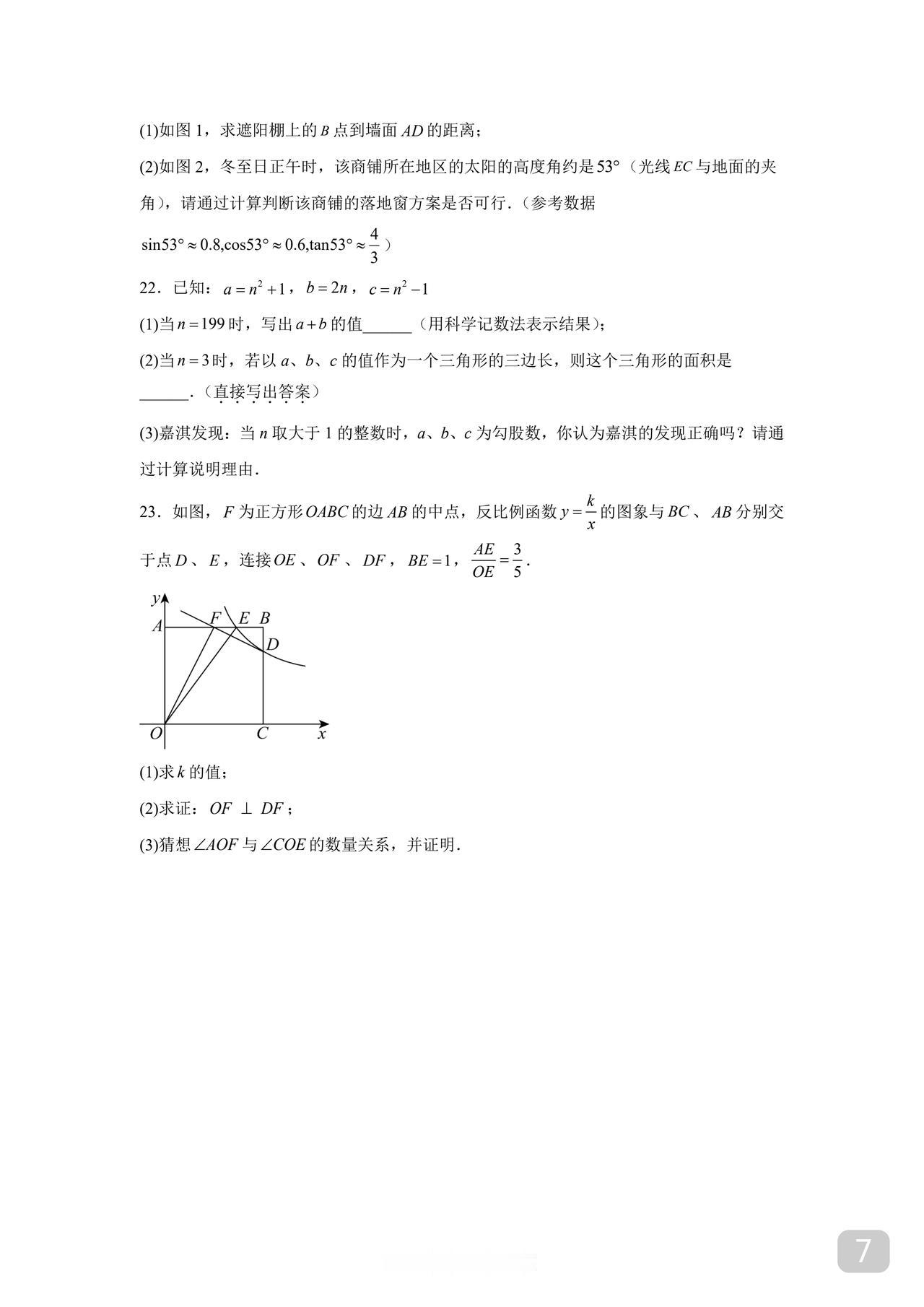 最新中考数学模拟卷 此卷甚好 难度和情境题的设置都贴近中考 值得考前测实力增信心 第8页为空白页已剔除