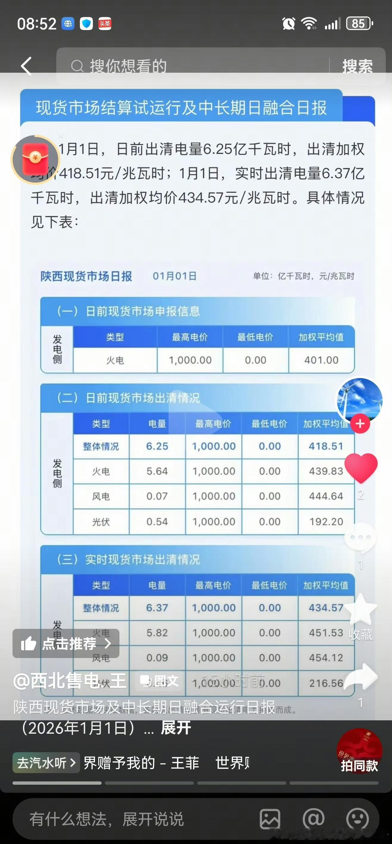 陕西一天的价格,挺有意思的,光伏价格被压死
