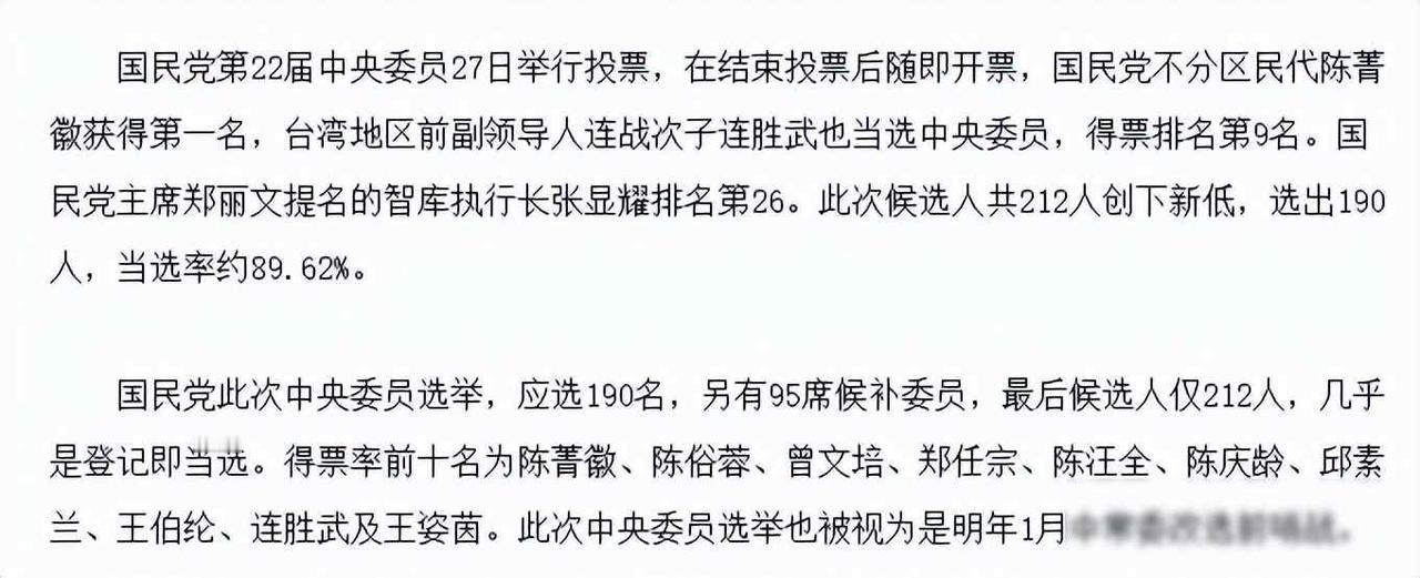 朱立伦退了,连家动了,国民党乱了 那天投票结果出来,大家都没觉得意外,212个人报名选中央委员,最后180个当选,几乎没人落选,这不像选举,倒像是分配名额,陈菁徽票数最高,她母亲黄昭顺在北部根基深,她自己跟朱立伦的新北、桃园那伙人关系紧密,前十名里,朱系占了一半,蒋根煌、邱奕胜、戴锡钦这些地方议长全都进去了,连战的儿子连胜武第一次参选就排第九,花莲那边的傅崐萁也拉到一票,他们的人拿了第二名,看起来,北边朱家、东边花莲、中间连家,三块地盘早就划好了。 郑丽文上任才三个月,想搞点改革,结果碰了一鼻子灰,她推的张显耀只排到第二十六位,根本没选上,南部那些人没怎么支持她,报名的人少,竞争也不激烈,她本想用张显耀平衡南北关系,却被北边的人看成偏心,反而更不买账,现在主席的位置坐得有点晃,刚上台就遇到这种事,确实挺尴尬,说白了,大家对“改革”这两个字已经免疫了,光喊口号没用,得拿出真本事来。 朱立伦虽然不当主席了,但他在新北和桃园打下的基础还在,从当市长那时候开始,他就把里长、议员和市政团队都连在一起,形成一个完整的动员系统,这次选举其实是在检验谁的地盘还稳固,陈菁徽赢了,说明朱系在基层依然掌握话语权,接下来1月31号要选中常委,只有29个名额,中央委员的票数会直接转成支持力量,朱系早就提前铺好路,等于已经锁定几个位置。 连战家最近的动作很有意思,连胜武从两岸基金会调去了青年部,接手郑丽文负责的KMT Studio,他们不去抢主席的位置,也不争权位,而是悄悄地把手伸向年轻人这个最薄弱的地方,国民党现在最大的问题是没人愿意加入,老面孔太多,年轻人觉得没意思,连家这一招表面上是在搞组织再造,实际上是想慢慢换血,他们不和你硬碰硬,但专挑你最软的地方下手,这招既聪明又狠。 整个党现在的情况是,各个派系的影响力已经超过了中央,一百八十个中央委员全都当选,没有人落选,这不是在比较能力,而是在分配职位,北边的朱系掌握票源,东边的花莲系负责党团事务,连家关注青年群体,南部依靠民意支持,中央的声音越来越弱,谁也不服谁,这不像选举,更像是在划分势力范围,大家都清楚,谁掌握了基层,谁就有发言权,主席换不换人其实影响不大,真正能决定事情的,是那些天天跑社区、联系里长、召开座谈会的人。 我倒是觉得这种局面不是一天两天的事,过去十年国民党一直没能解决内部整合的问题,每次换主席只是换个名字,底下照样各干各的,连家想从年轻人入手,朱系守住传统地盘,花莲那边依靠地方势力自保,南部干脆选择躺平,谁都没打算彻底改变,都在等别人先动,结果就是越拖越散,越散越弱,没人敢动真格,怕伤到自家的饭碗,这种状态别说赢选举,连自己内部都快管不住了。 这种局面让人感到疲惫,一个政党如果连内部人员的安排都说不清楚,它处理重要事务的能力就值得怀疑,现在人们关注的焦点不是政策本身,而是派系关系和利益分配,政治演变成了内部游戏,普通民众对此只能摇头叹息,可实际情况是游戏规则早已改变,他们却还在沿用旧方法应对,这盘棋恐怕会越来越难以收拾。