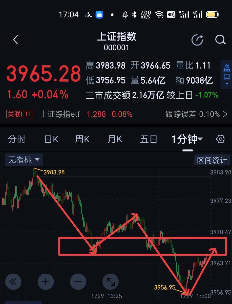 上证指数,明天可观察3966的得失,站稳可暂当成5分钟中枢的构建〈图1〉。失守,则可构建一分钟的下降中枢,三十分钟一笔下将继续生长,只能等待一分钟结构最终完成,再选择是否操作〈图2〉。
