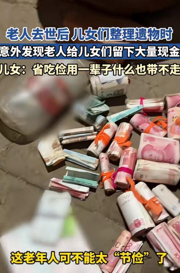 老人一辈子剩的钱、年轻人一年就花完了,爱人先爱己![祈祷][不看] 那代人。辛苦一生,只为儿女。可现在人很少懂得珍惜了。 农村百分之九十九的老年人都这样,舍不得花,因为他们从小苦过习惯节省,顺其自然就形成了节俭的习惯! 婆家附近有个老人就是这样,五保户,老年痴呆了家里翻出来一捆捆的钱,都是自己干环保挣的,舍不得吃花,死了都分给三个儿子了,十来万…… 舍不得吃舍不得穿。都给儿女攒。哎……估计以后这样的就少了吧!老人节俭观念 老年存款 老人去世遗产 挣钱一辈子的钱 农村老年人存款 老年人遗产 3万老人养老钱