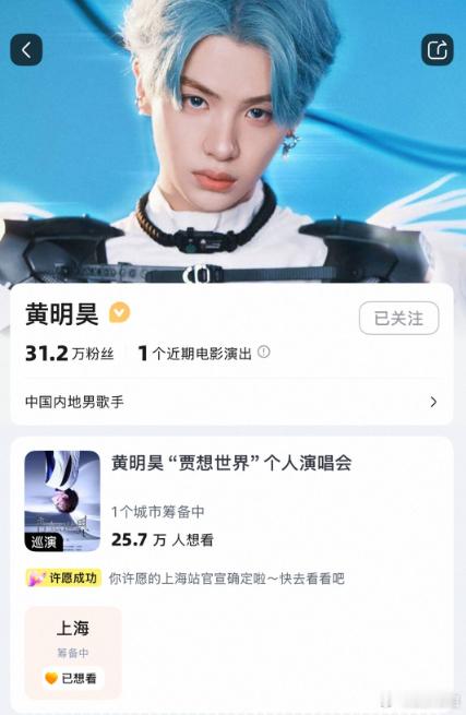 黄明昊上海演唱会筹备中啊啊啊真的给我等到了!对接确认:黄明昊上海演唱会在筹备中2