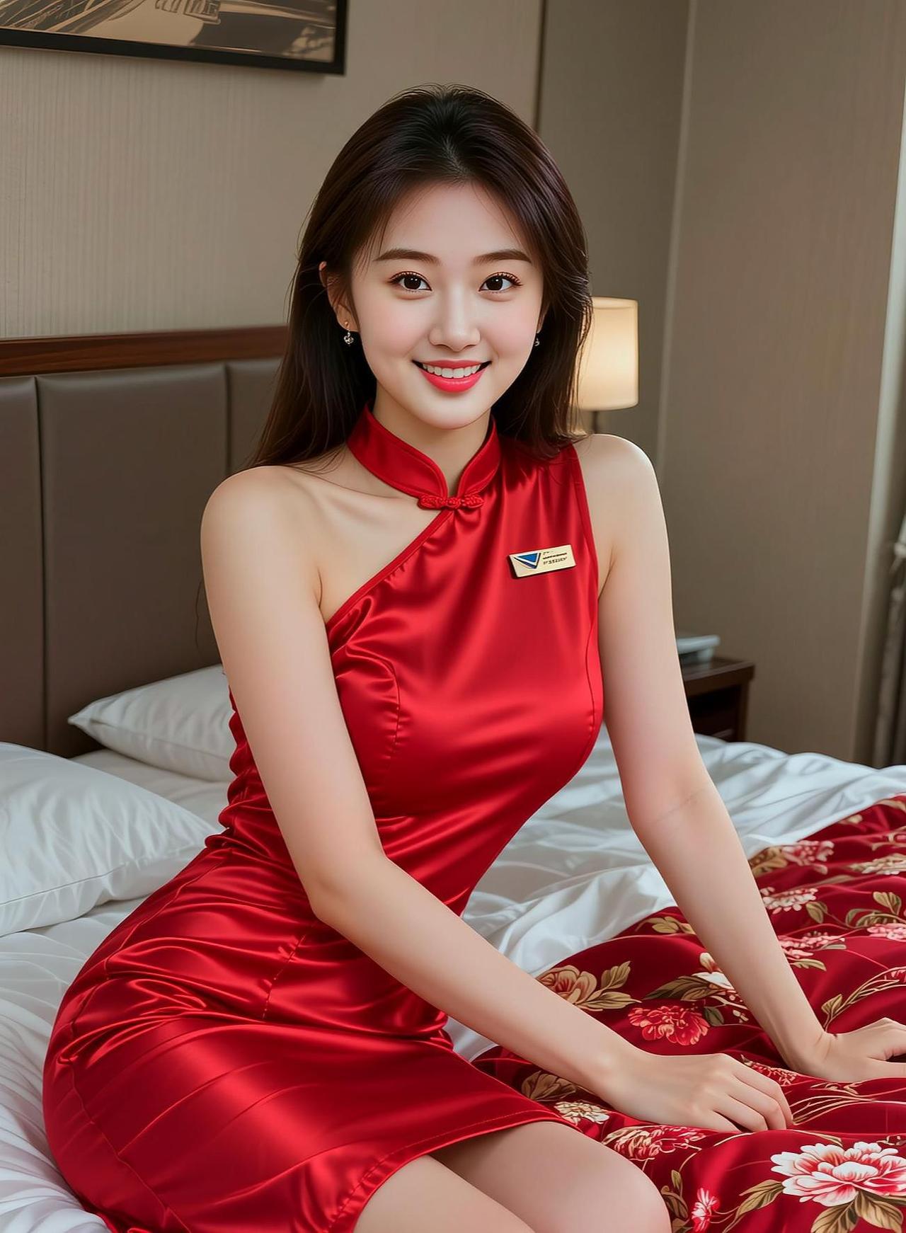AI红裙空姐日常穿搭分享气质温柔