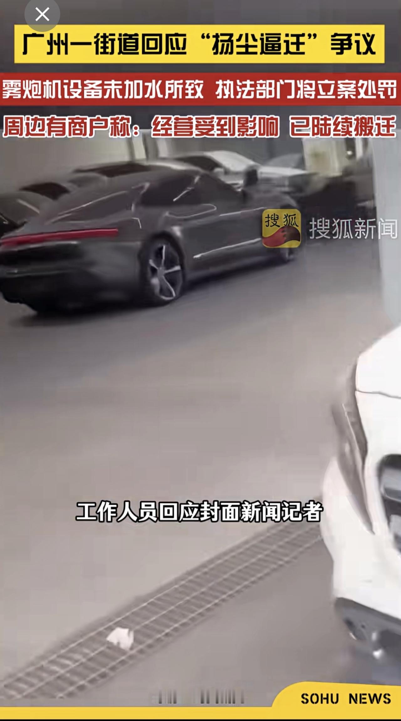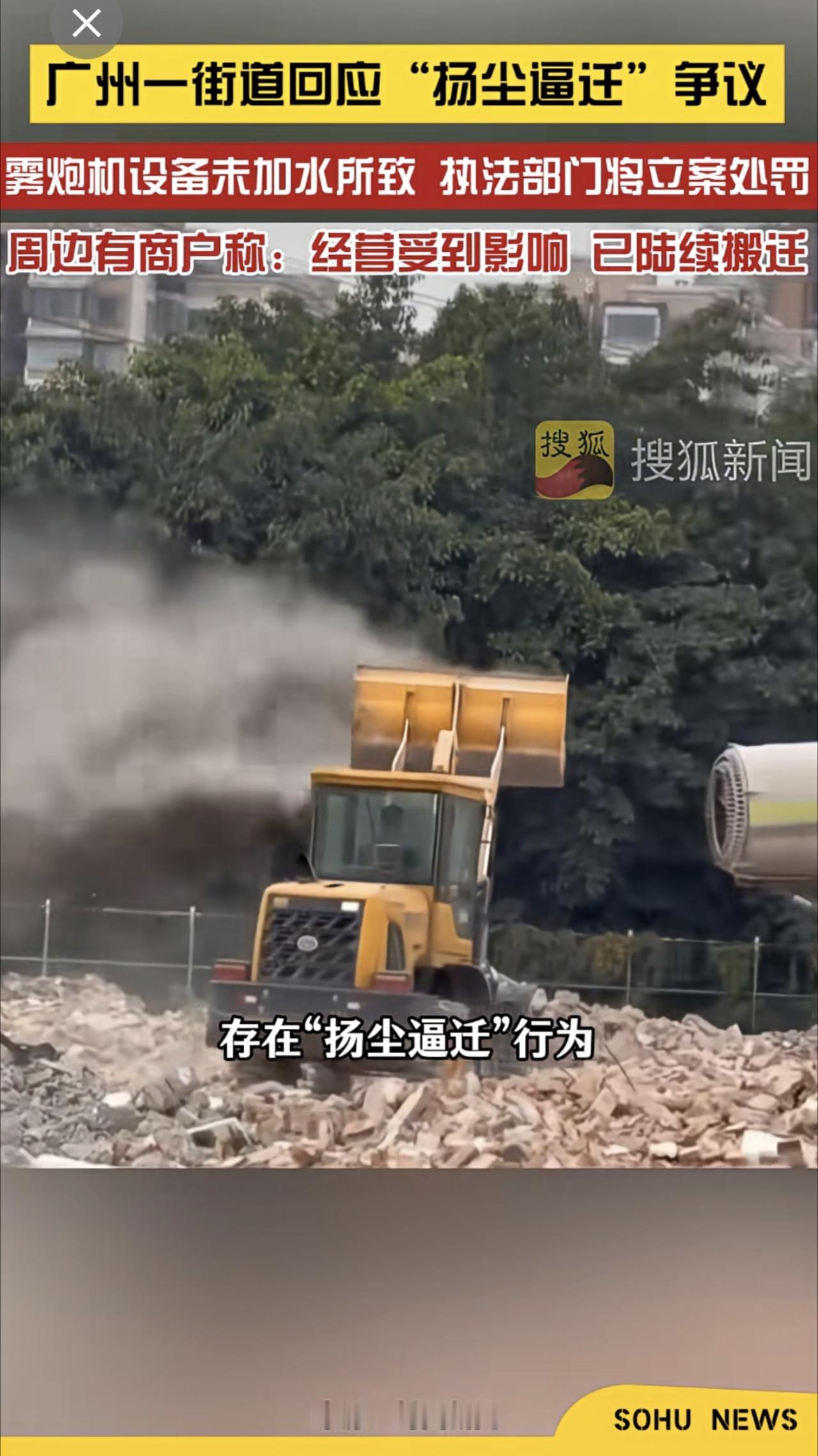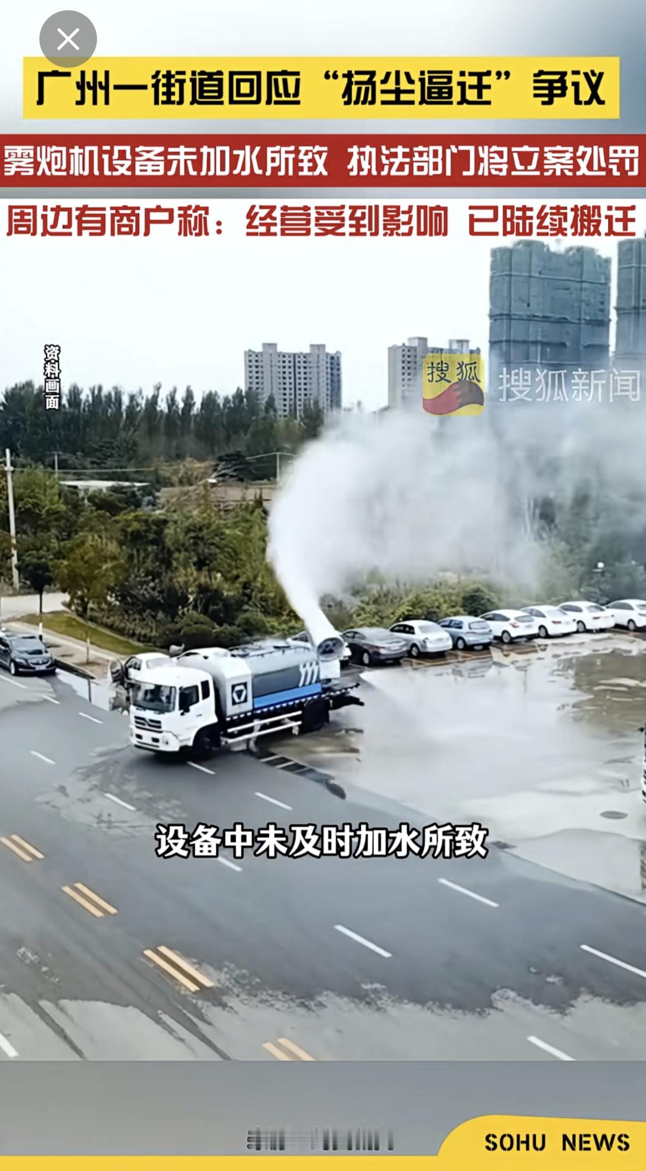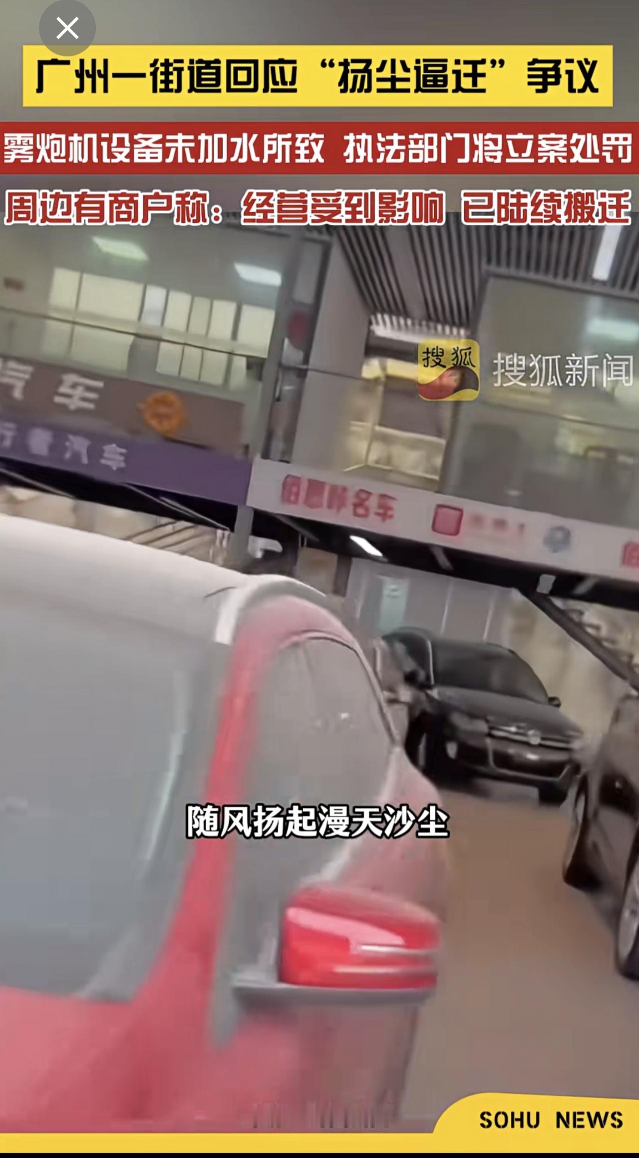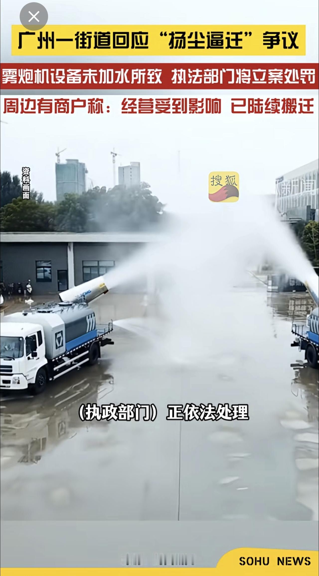 1月4日,广东广州。广州一街道回应“扬尘逼迁”争议,雾炮机设备未加水所致,执法部门将立案处罚。周边有商户称:经营受到影响,已陆续搬迁。