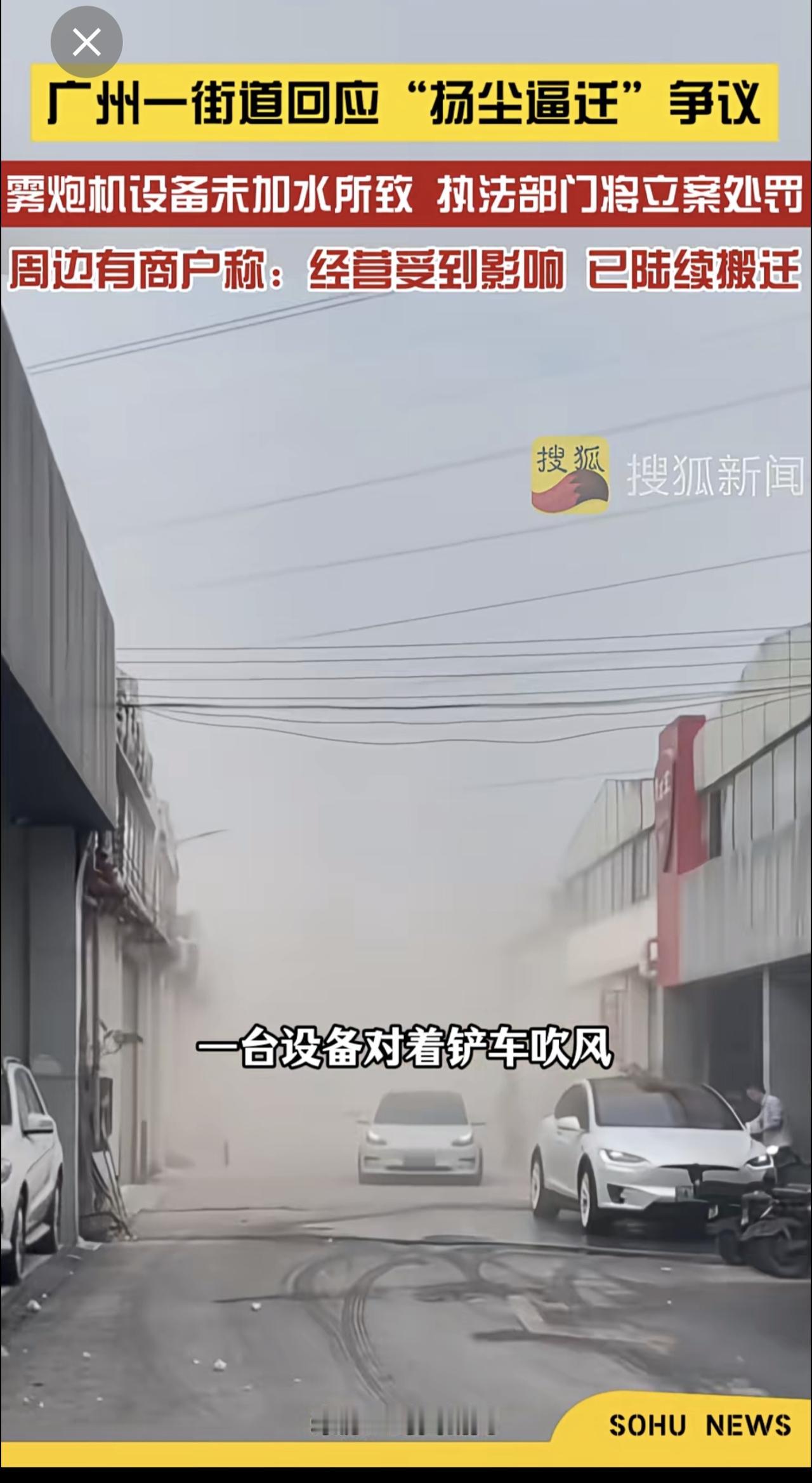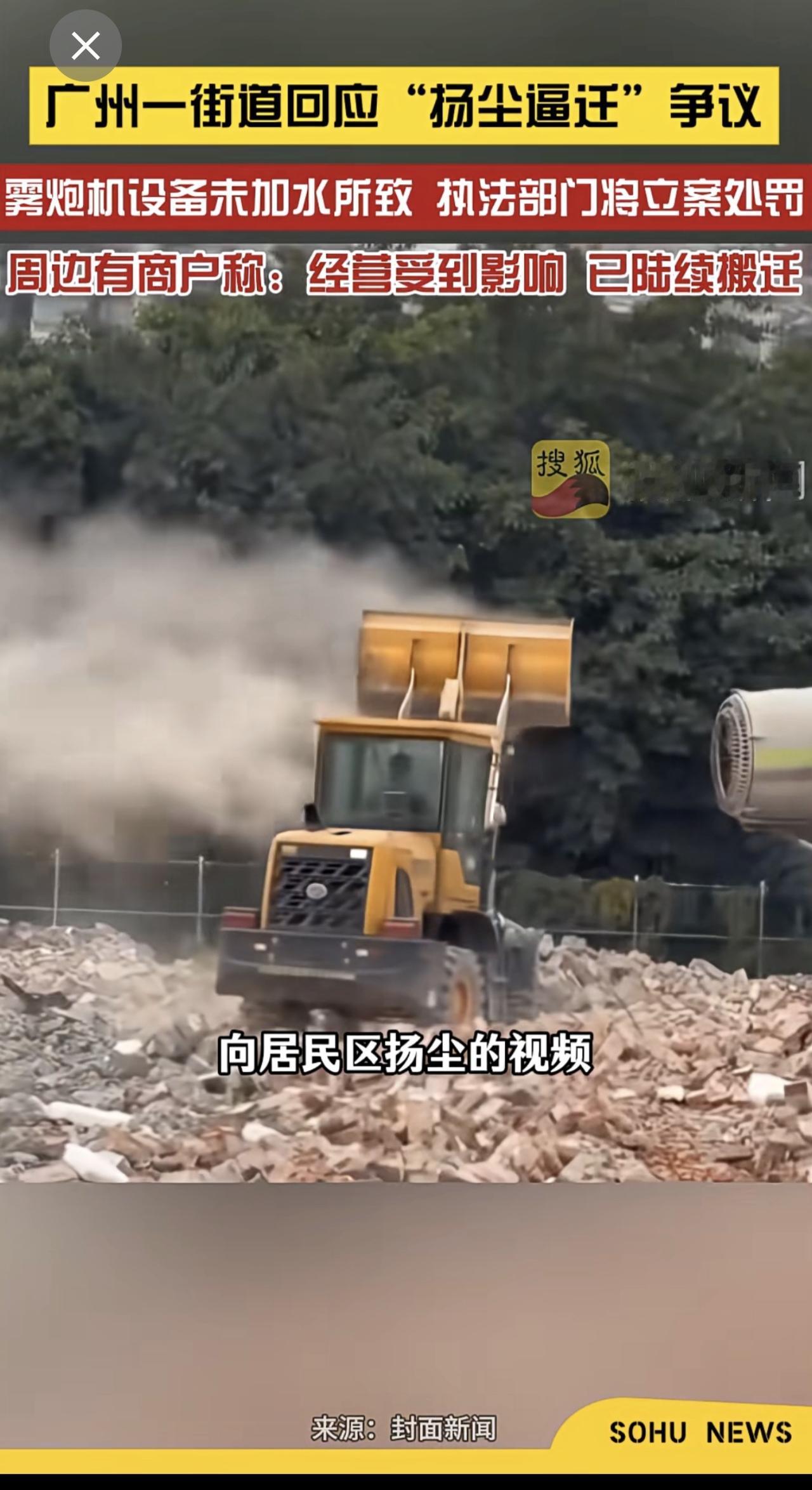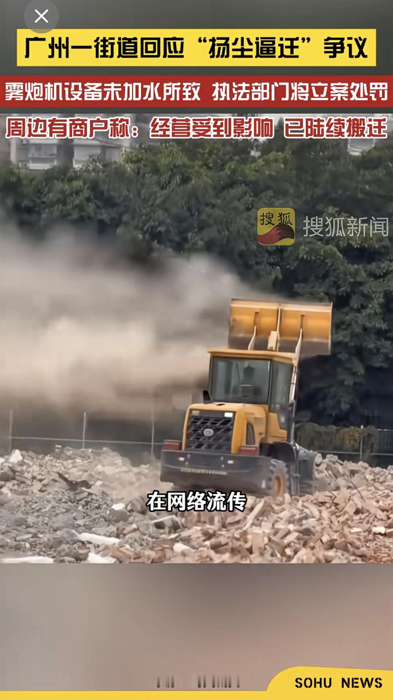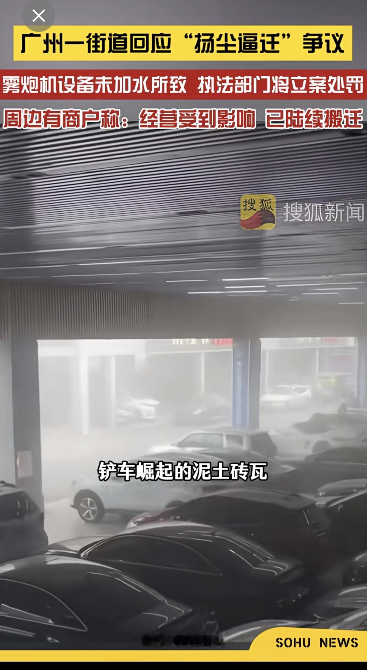 1月4日,广东广州。广州一街道回应“扬尘逼迁”争议,雾炮机设备未加水所致,执法部门将立案处罚。周边有商户称:经营受到影响,已陆续搬迁。