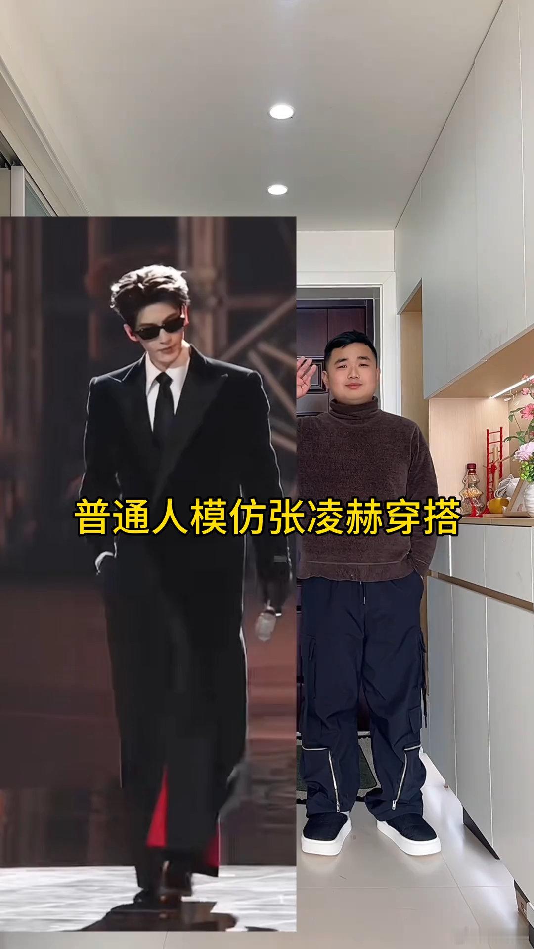 普通人模仿张凌赫跨年穿搭 跨年换头失败!模仿张凌赫穿搭,走出了菜市场卖鱼的气势