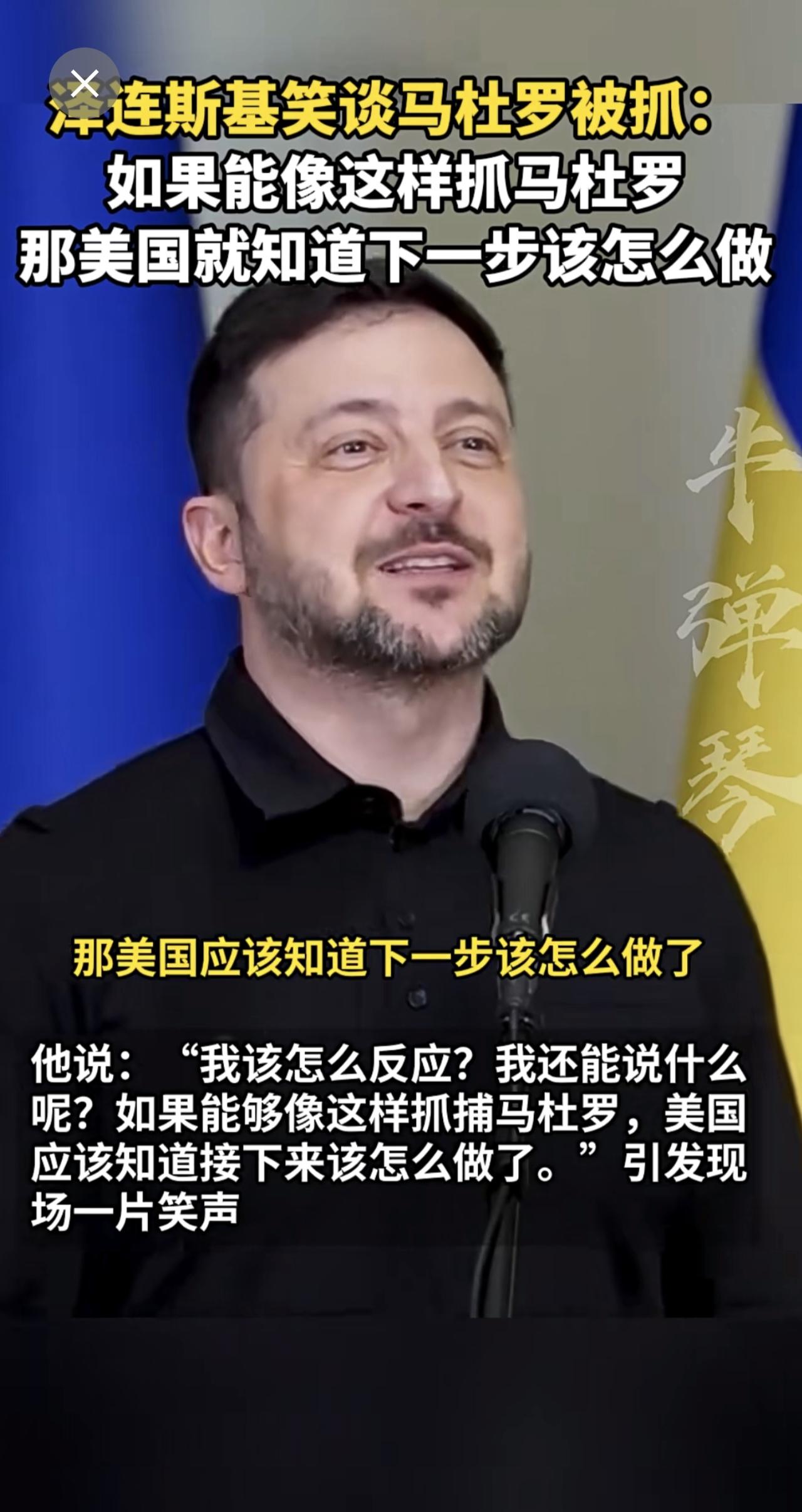泽连斯基笑谈马杜罗被抓:如果能像这样抓马杜罗 那美国就知道下一步该怎么做[捂脸]