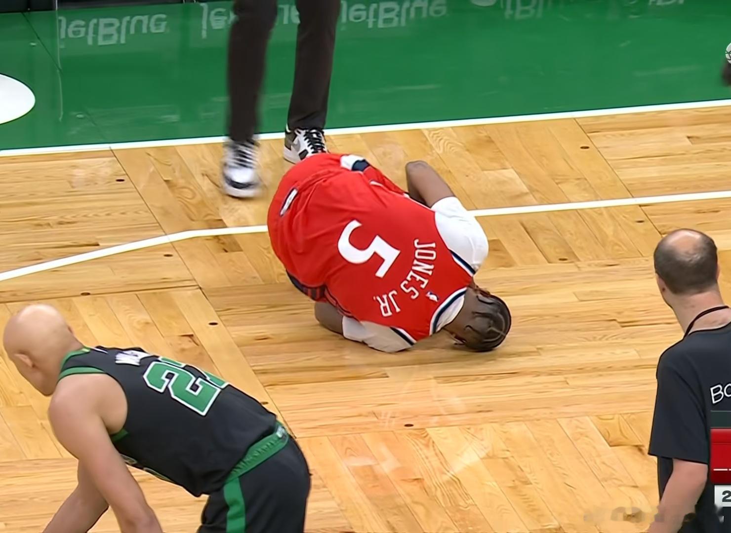 真的太揪心了!又是凯尔特人,又是那条腿……琼斯啊……小琼斯真的太惨了,本赛季快船两次交手凯尔特人,小琼斯都受伤了!上一次被布朗扑倒断球压到膝盖,歇了17场比赛阿! 这歇了这17场,快船别提了有多惨了,正是从小琼斯那次伤病开始,快船就一路跌倒西部垫底!而这次在第四节又是被普里查德扑倒断球再次压到那个伤腿!看着好像很严重,情况不容乐观,估计又要歇好久了!看看明天的伤病情况怎么样吧!命运不饶人,小琼斯真的哭死,他对于快船来说真的太重要了!其一能增加轮换阵容,快船本就伤痕累累,保罗被炒鱿鱼,比尔有赛季报销,队内老球员又太多,博格丹又高挂免战金牌!其二他的防守价值很高,能盯防能协防,关键是能替小卡承担防守压力,这就可以让小卡不会那么累,可以多把精力放在进攻端,减少伤病隐患!其三,琼斯是一个三分点,可以拉开空间且也有一定的终结能力跟空切能力,可以丰富快船的战术!快船这个队属实是被诅咒了,每当起势就有人受伤!只希望小琼斯的伤不会太严重,早日康复吧!波士顿凯尔特人凯尔特人终结快船6连胜洛杉矶快船小琼斯