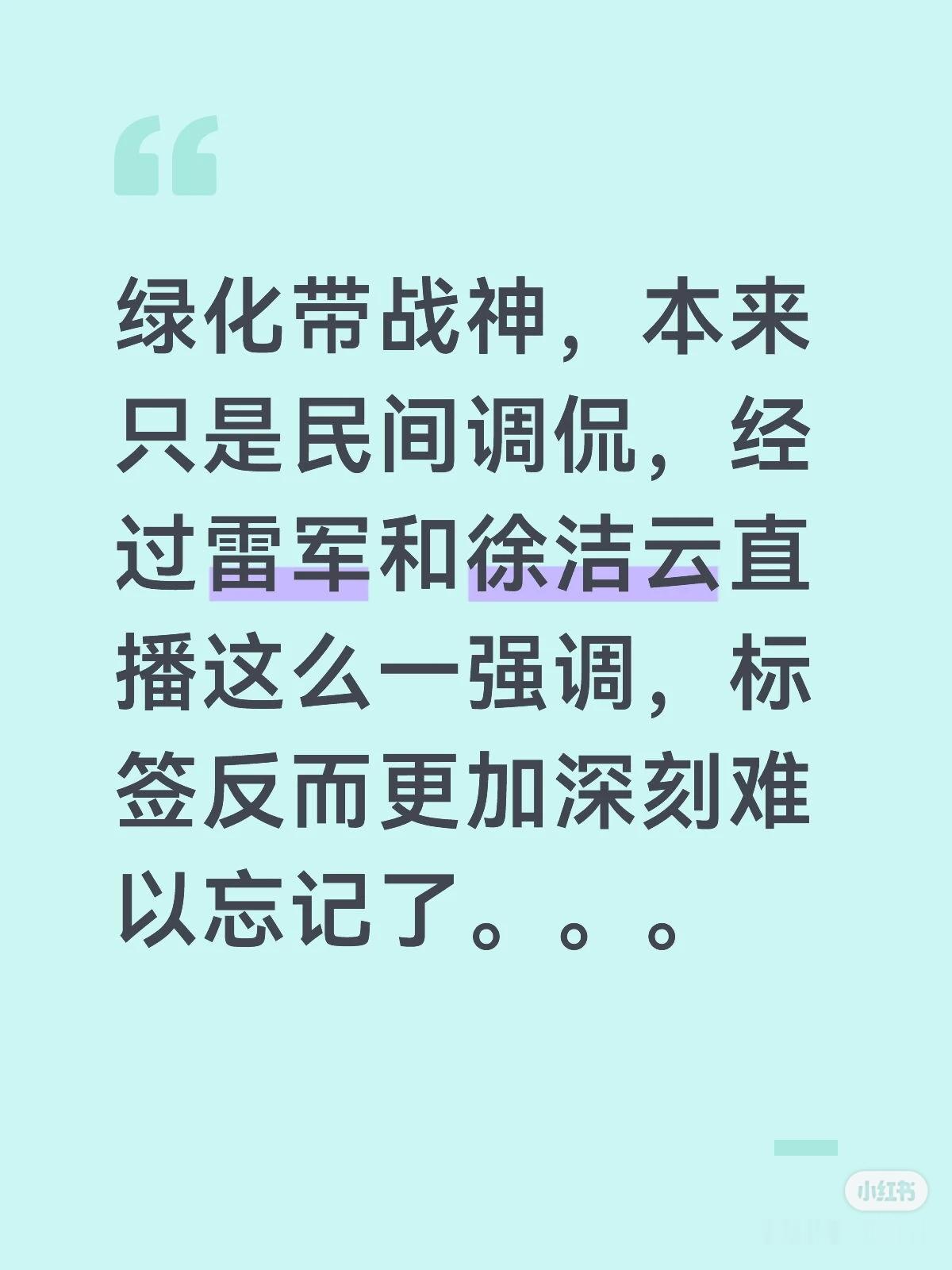 绿化带战神,本来只是民间调侃,经过雷军和徐洁云直播这么一强调,标签反而更加深刻难以忘记了。