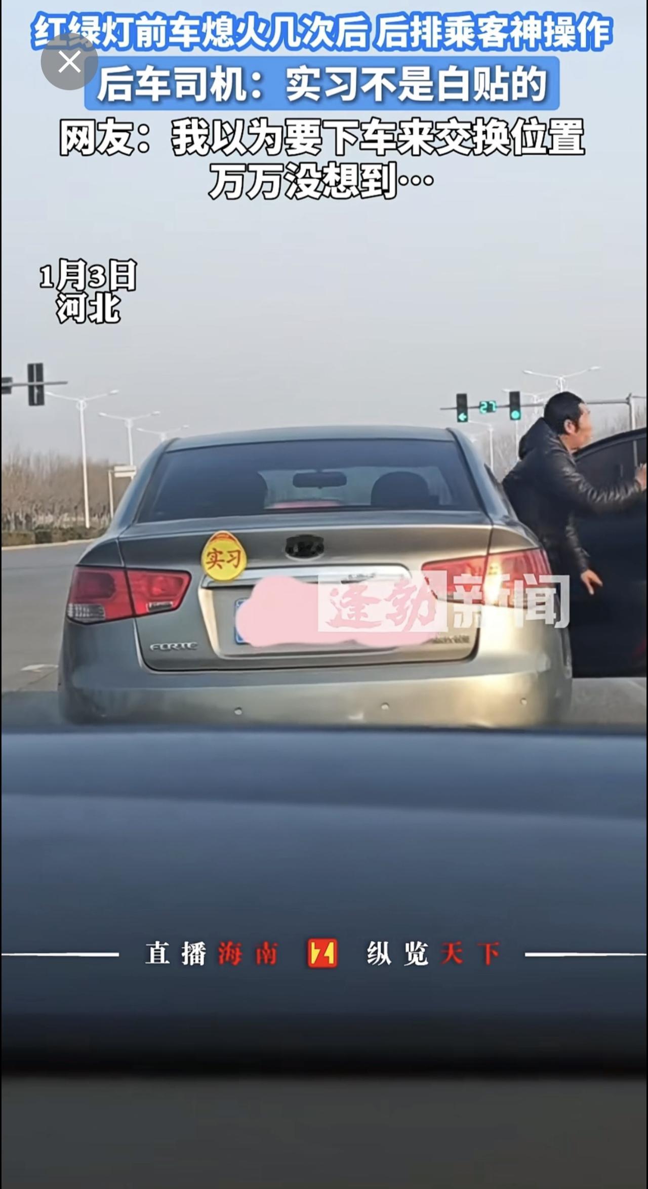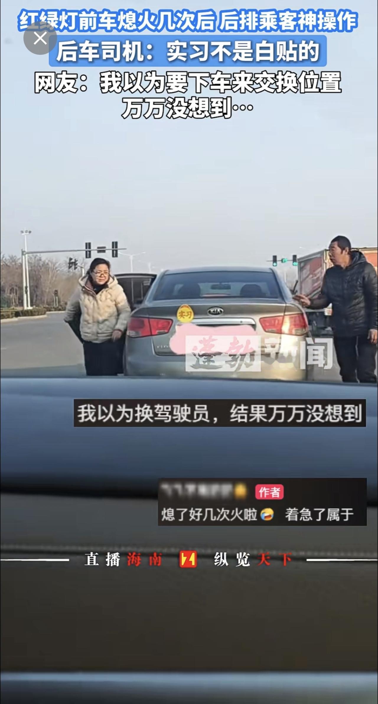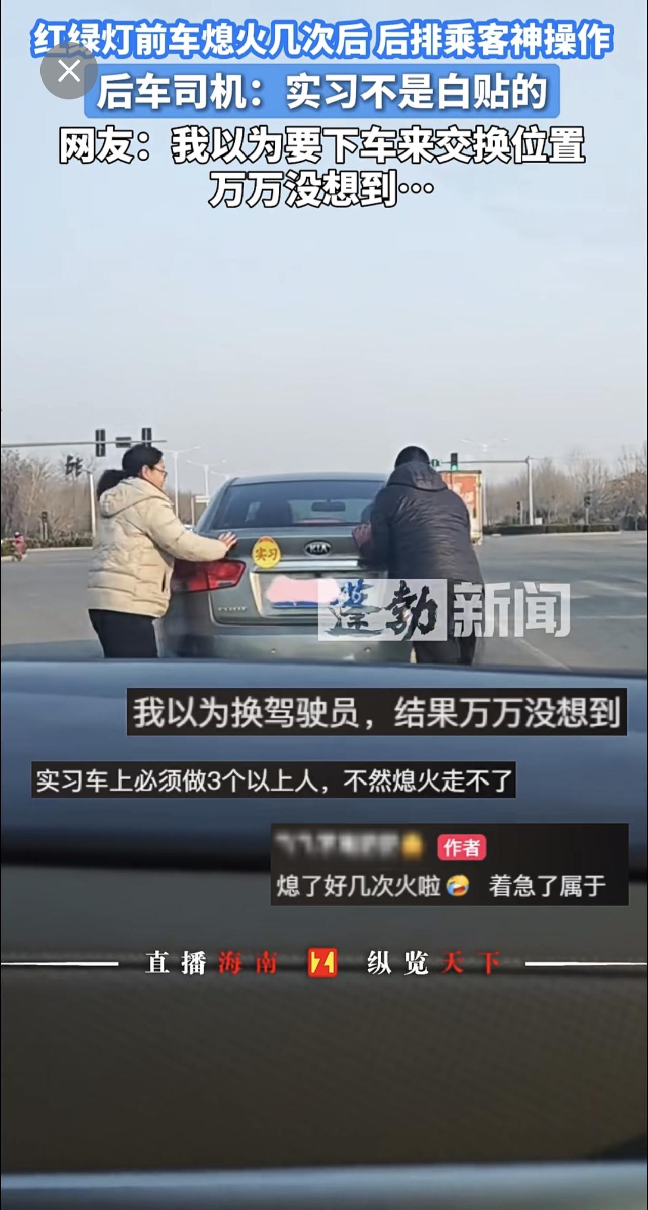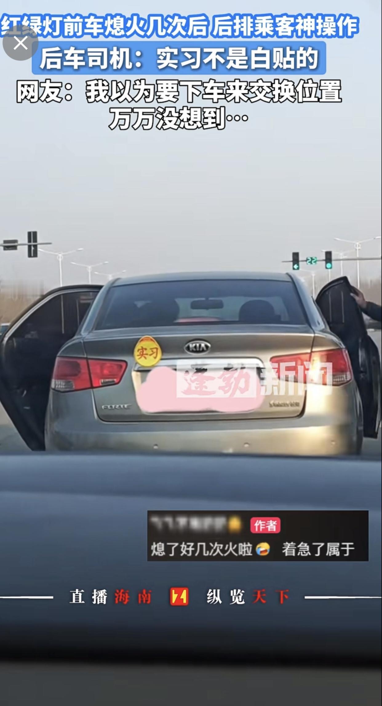 红绿灯前车熄火几次后,后排乘客神操作,后车司机:实习不是白贴的,网友:我以为要下车来交换位置,万万没想到…
