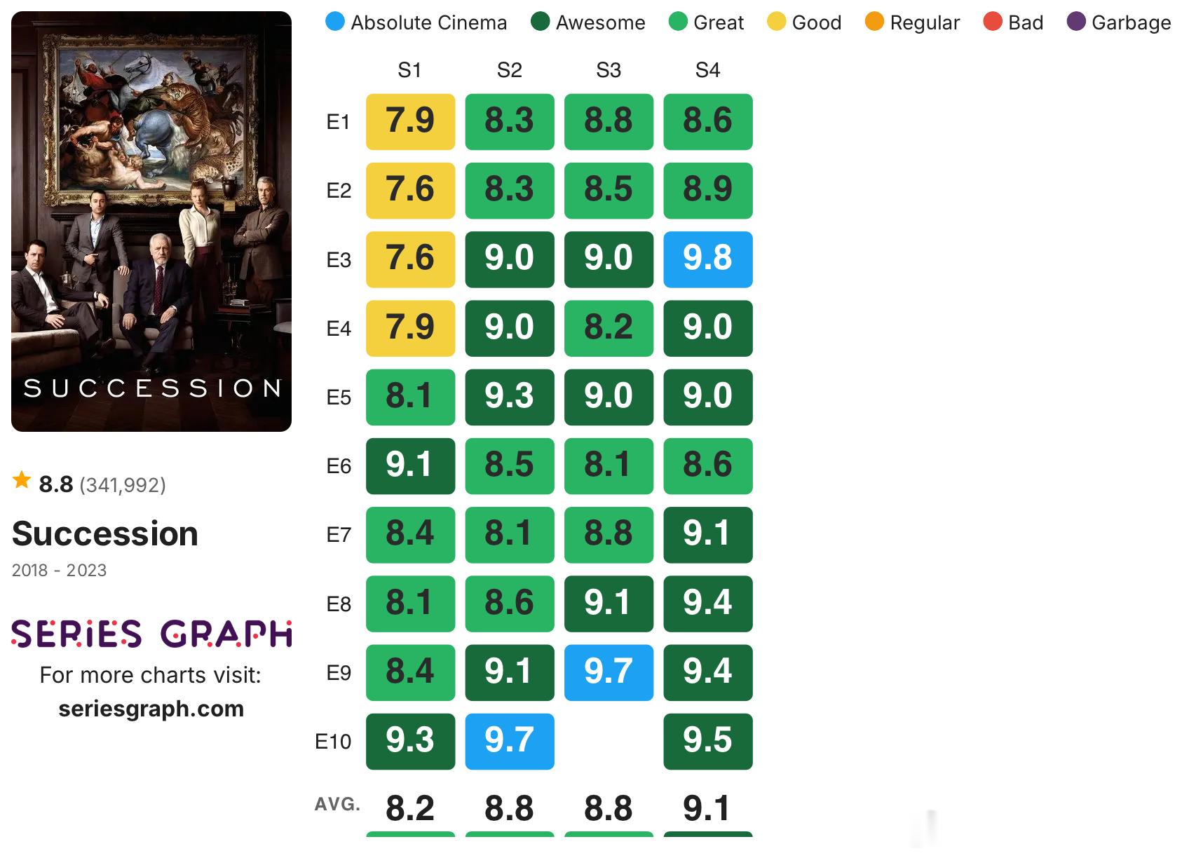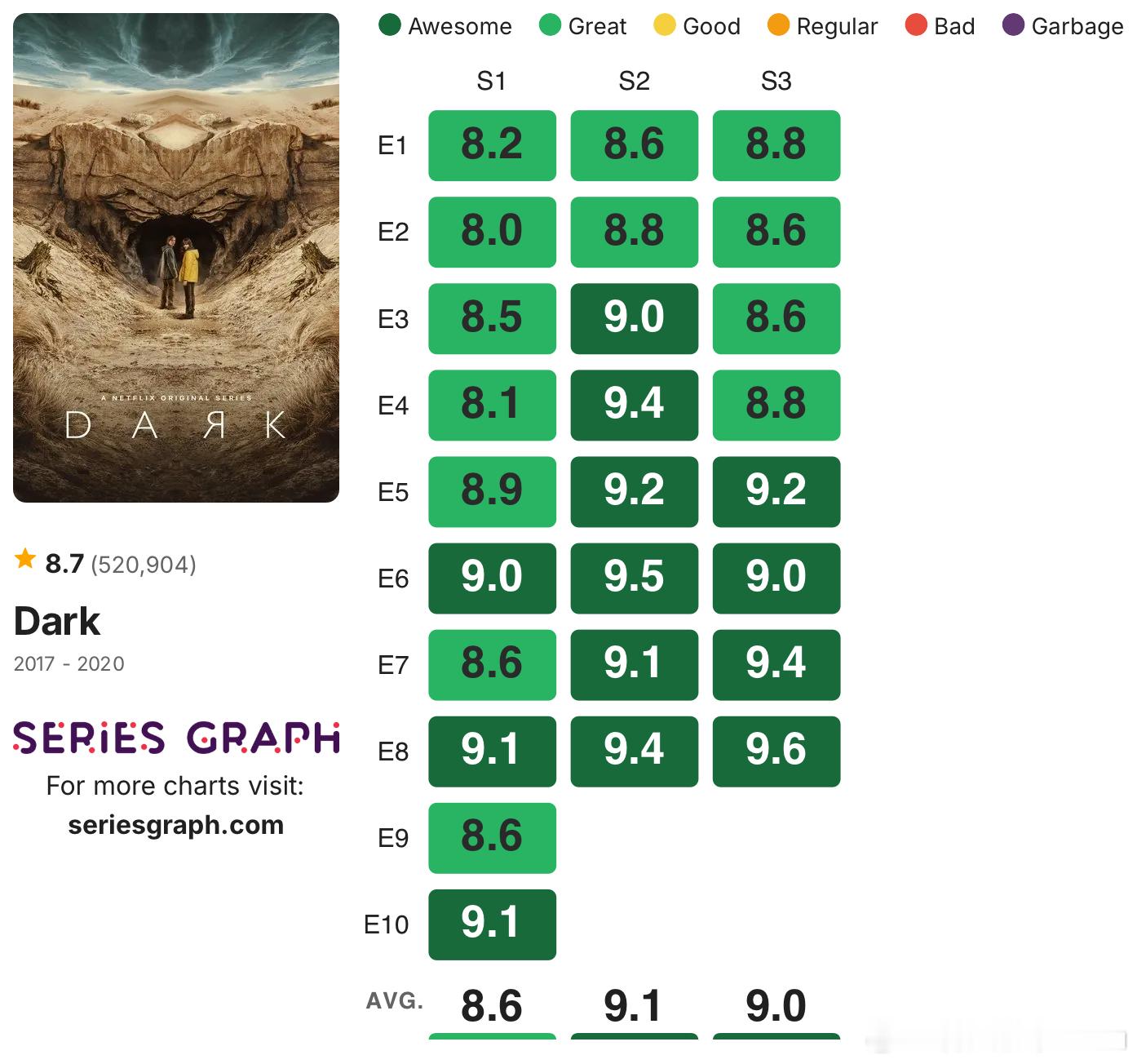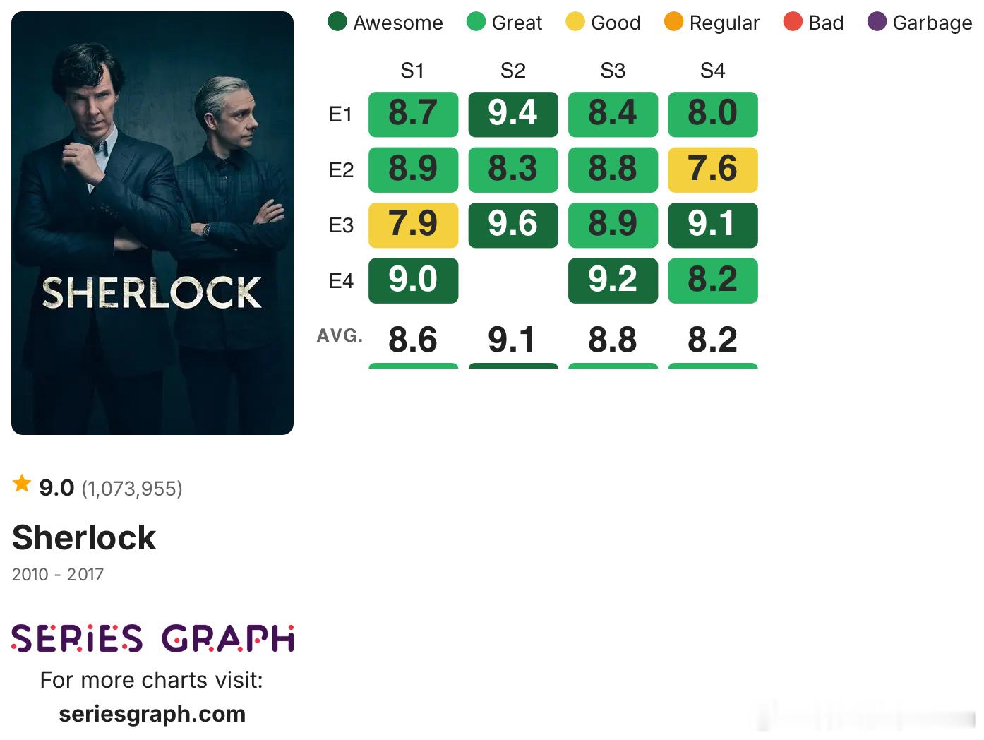 发一些没烂尾的高分剧集的IMDb单集评分:《绝命毒师》《风骚律师》《黑道家族》《火线》《暗黑》《夜魔侠》《黑客军团》《神探夏洛克》《继承之战》《毒枭》《浴血黑帮》《我们这一天》