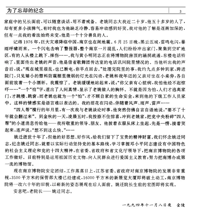1994年南京博物院徐湖平纪念含冤而死的老院长姚迁的文章,现在看起来是不是很滑稽。