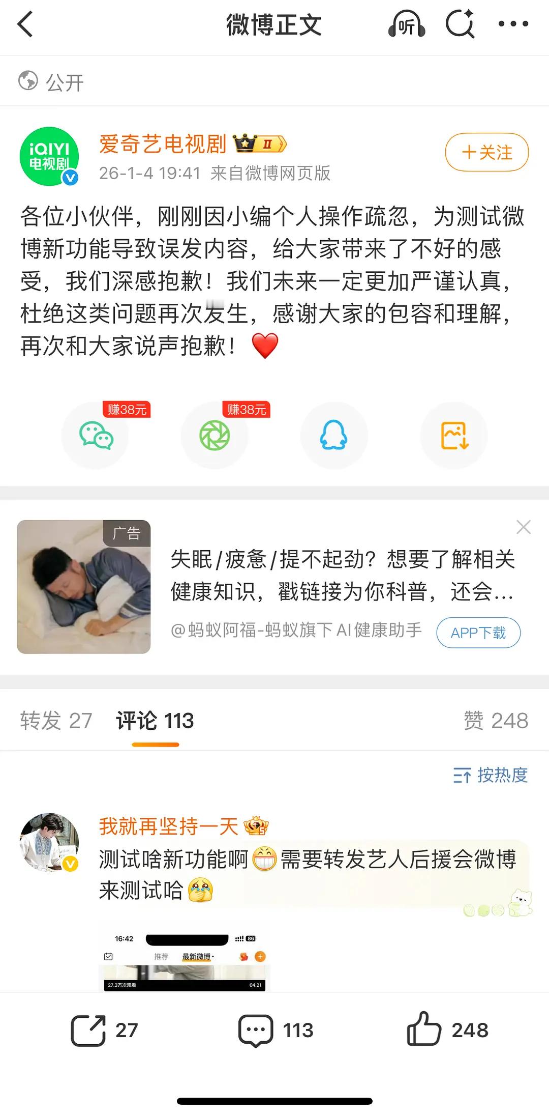 爱奇艺电视剧致歉真的看笑了,测试新功能,你还不如直接老老实实道个歉呢