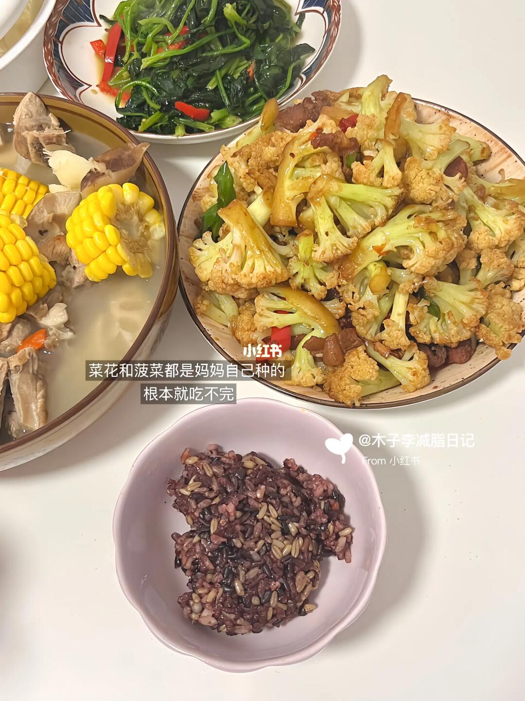 初始体重:120斤 现重:90 ↓30斤 、 🥣早:贝果芋泥奶砖➕滑蛋➕苹果➕午餐肉➕蓝莓➕拿铁 🥣午:排骨玉米汤➕炒菠菜➕糙米饭➕肉炒菜花 🥣晚:牛奶泡面包丁➕奶酪玉米花➕胶原蛋白 - 现在是中午吃家常菜 晚上就随便吃吃啦 不怎么动 就晚上少吃点吧! 感觉这餐刚吃 下餐又开始[暗中观察R]