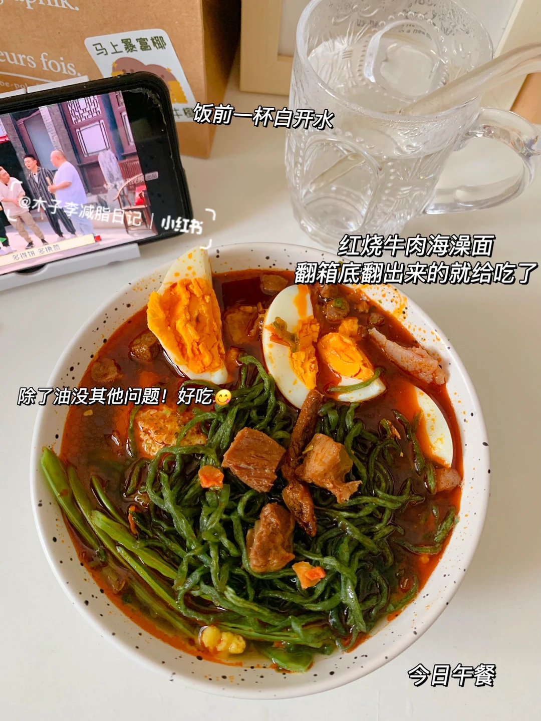 🥙午餐:红烧牛肉海澡面➕白开水➕鸡蛋