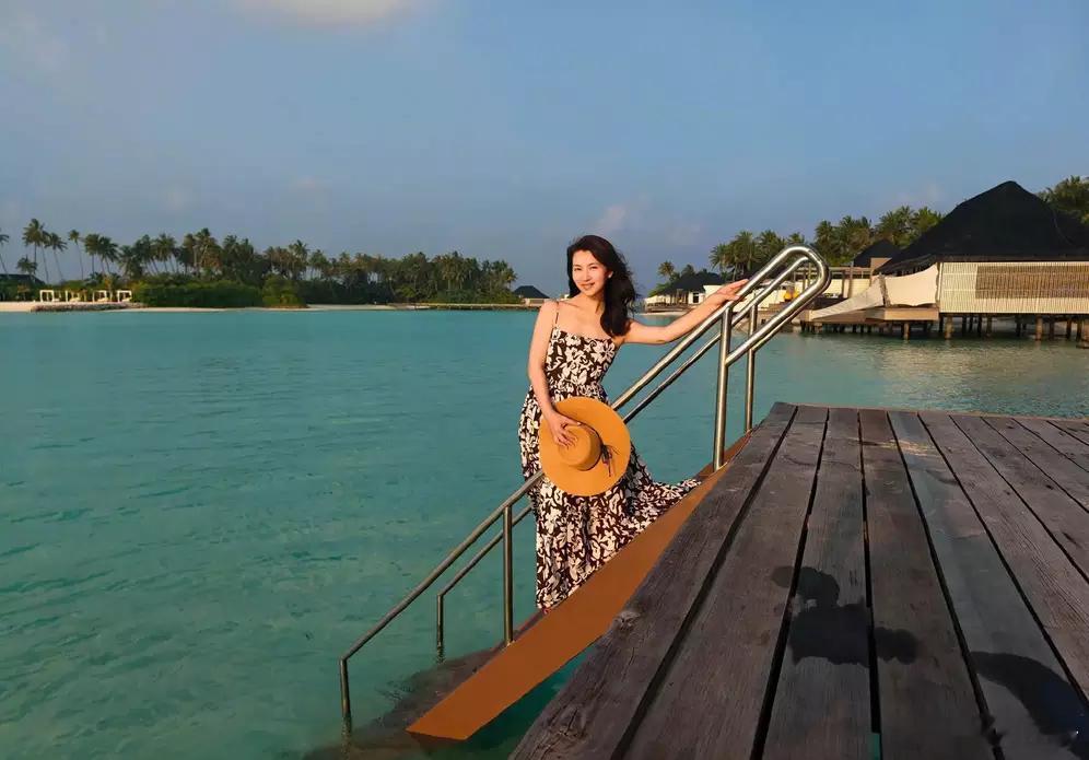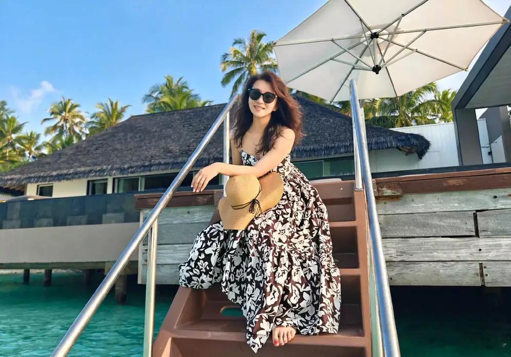 分享娱乐陈好晒海边旅游照好惬意!穿吊带裙晒日光浴笑容温柔迷人