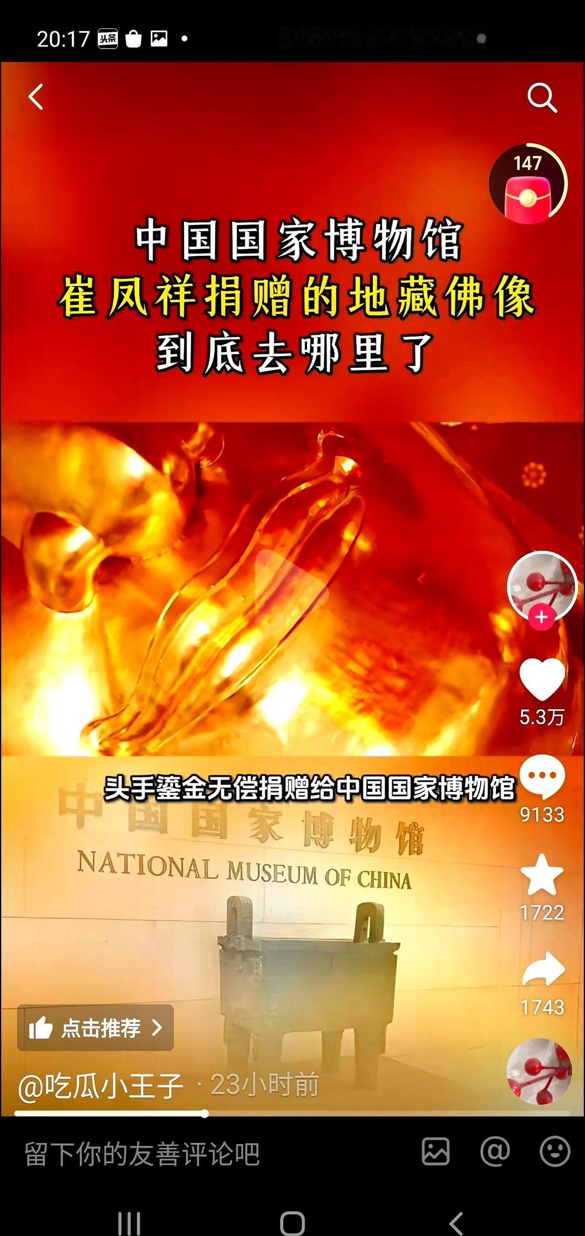 我今天真被一件事给气着了,不说出来都觉得对不起自己的良心。 一个老大爷,把自己家传的宝贝,一尊明代的鎏金佛像,一辈子的心爱之物,无偿捐给了国家博物馆。 证书拿了,公章盖了,手续齐了。老人心想,妥了,给宝贝找了个全国最稳妥的家。 你猜怎么着? 几年后,老人想问问佛像展出了没,人家国博一查:对不起,系统里没这个东西。 没入库记录,没档案。 就这么凭空消失了。 从09年到现在,十几年了,老人觉都没睡安稳过,跑了无数趟,打了无数个电话。 得到的回复永远是那几句:在梳理了,请耐心等待。 最骚的操作是什么你知道吗? 是博物馆建议老人:要不……您自己去联系一下当年接收文物的那位员工? 我看到这儿,脑子嗡的一下。 这是什么逻辑?我把钱存银行,丢了,你让我自己去找那个柜员? 那不是一件冷冰冰的“文物”,那是一个普通人对“国家”这两个字最朴素、最滚烫的信任啊。 他没要一分钱奖励,没图半点虚名,他只是觉得,这么好的东西,理应属于所有人。 结果呢? 这颗心,连带着那尊佛像,一起弄丢了。 东西丢了,是管理出了天大的漏洞。 但这处理方式,简直就是把人的信任按在地上摩擦。 这事儿寒的,根本不止是崔大爷一个人的心。