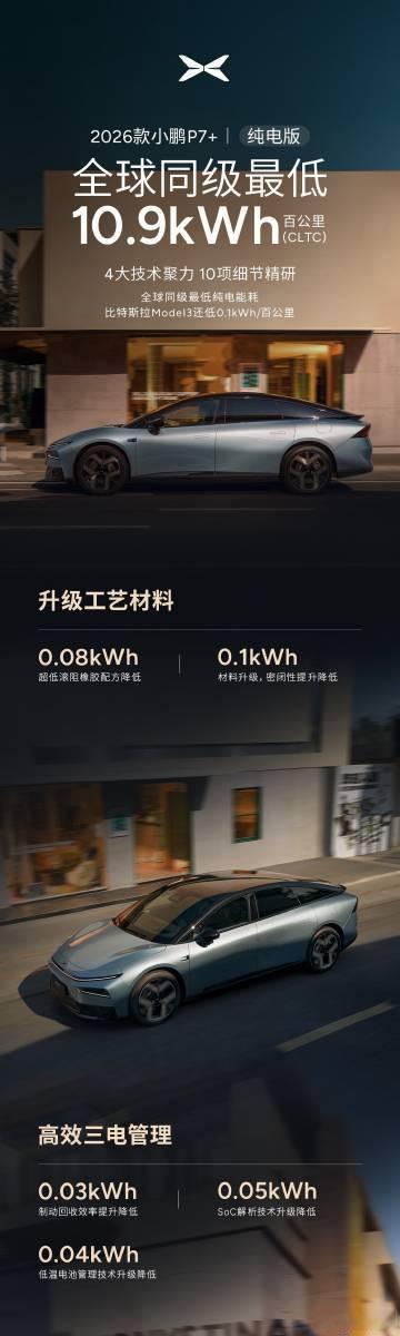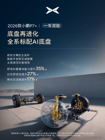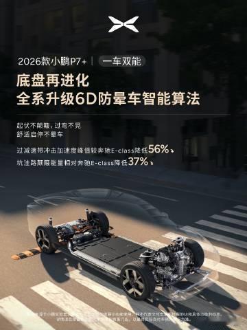 2026小鹏全球新品发布会定档1月8日小鹏汽车将于2026年1月8日发布两款新车:2026款小鹏P7+与小鹏G7超级增程。2026款P7+定位全球化车型,将在36国同步发布,提供纯电、增程双动力选择,纯电版CLTC最高续航725公里、百公里电耗10.9kWh,增程版综合续航1550公里。该车全系标配AI底盘,搭配豪华悬架与6D防晕车算法,还有104项体验升级,驾控与舒适兼具。小鹏G7超级增程聚焦续航、智能与空间,CLTC纯电续航430公里、综合续航1704公里,搭载800V+5C超充技术,标配零重力副驾与3颗图灵AI芯片,智能化与舒适性拉满。新款小鹏P7+全球动态评测首发新款小鹏P7+能耗管理之王再进阶