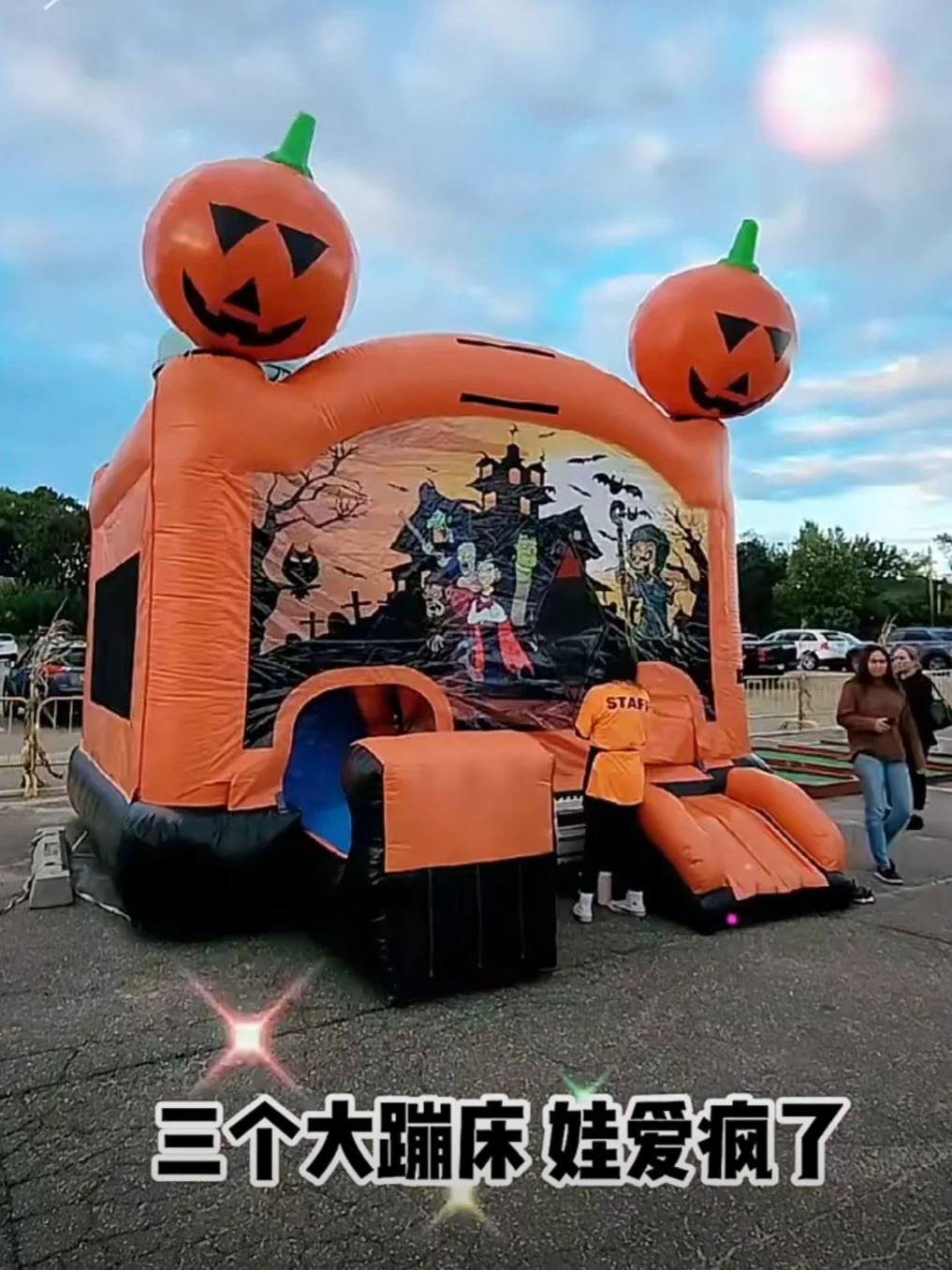 1️⃣有三个蹦床,两个有大滑梯