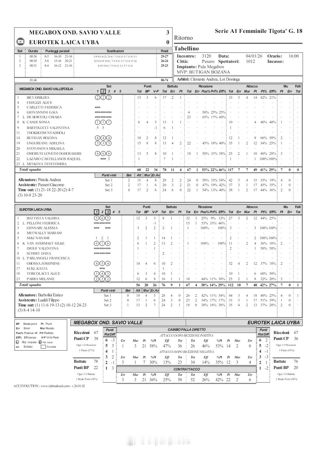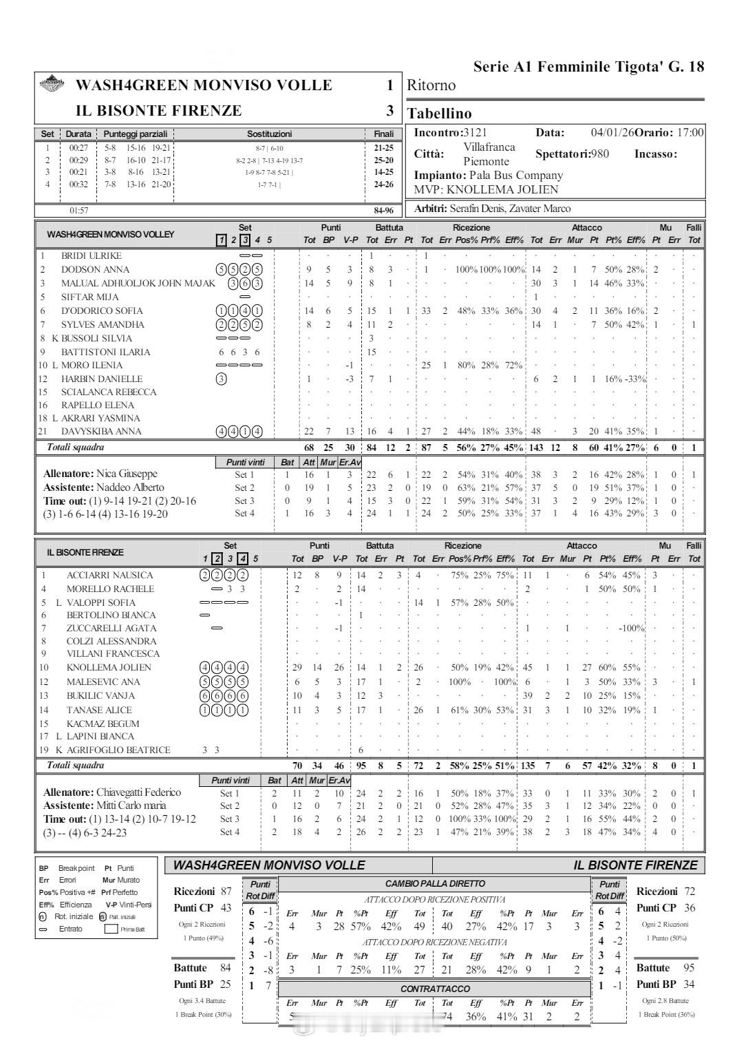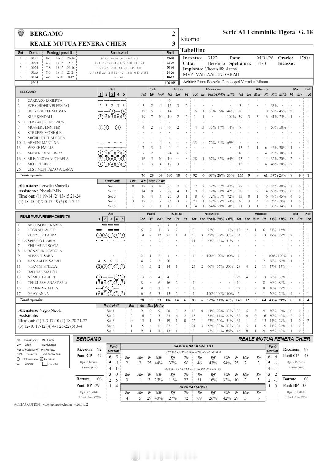 【意甲女排基耶里3-2险胜贝尔加莫】国际排坛战报速递1月4日,意甲女排第18轮