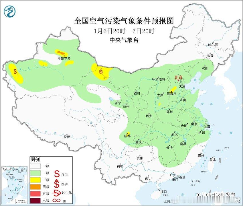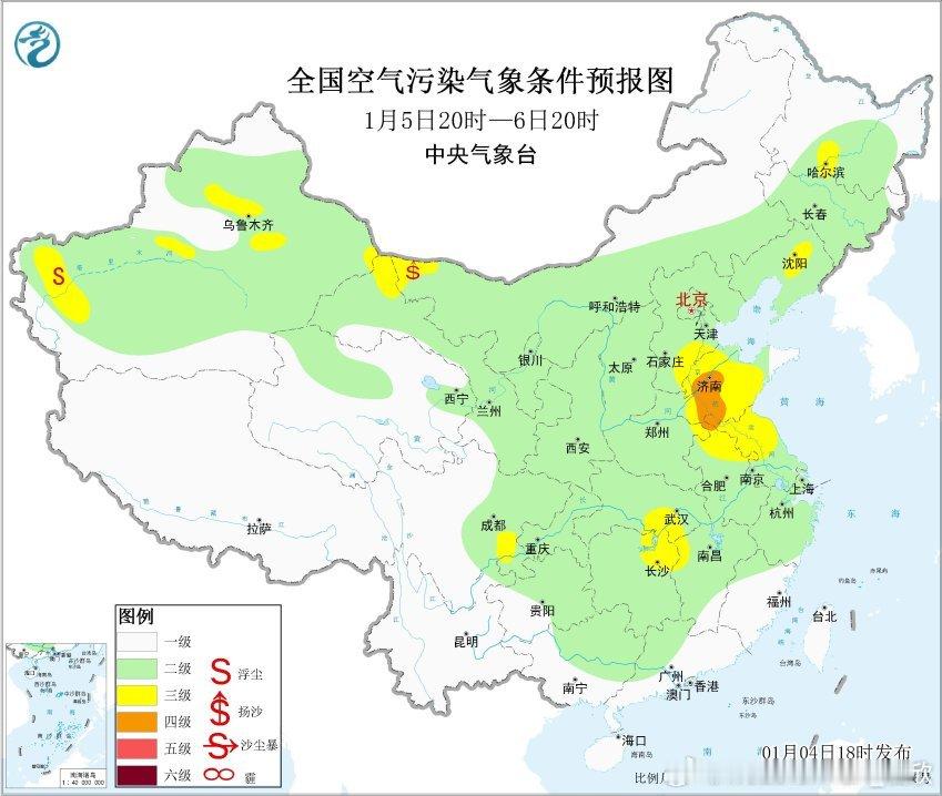 【雾和霾】今晚中央气象台发布大雾黄色预警:预计,4日夜间至5日上午,河北南部、山东西部、河南北部和东部、山西南部、安徽中北部、江苏西南部、湖北东部、湖南中北部、江西北部、贵州西部、云南南部等地的部分地区有大雾,局地有能见度不足200米的强浓雾。对应明晨湿度大。对于河北山东河南安徽一带,今夜到明晨的雾可能还会混合有霾。从18时空气质量监测看,山西南部、河南北部、河北南部、山东北部存在重污染,对应有霾。今晚到明天,弱冷空气南下,推动污染和霾向南转移,强度有所减弱,但很难彻底被清除。之后还有冷空气南下,看能不能清理干净。
