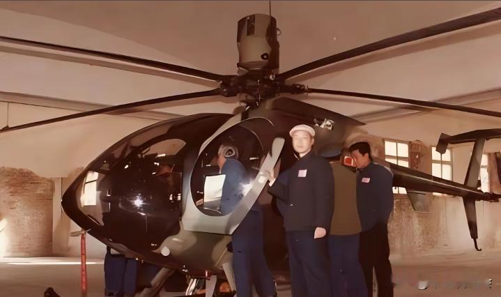 这是上世纪80年代末,中国代表团去美国考察引进“小鸟″轻型武装直升机时留下的老照片。 当时中国急需一种轻型武装直升机,用于装备部队抵抗苏联的威胁。 美国为了拉拢中国对抗苏联也同意向中国出售武器装备。 但是由于这种直升机的单价太高,且美方也不愿意转让生产制造技术。 无奈之下中国最后只能选择了性能稍逊的法国“小羚羊”武装直升机。 后来又引进了“小海豚”直升机的生产线,研制了“直九”系列直升机。直升机