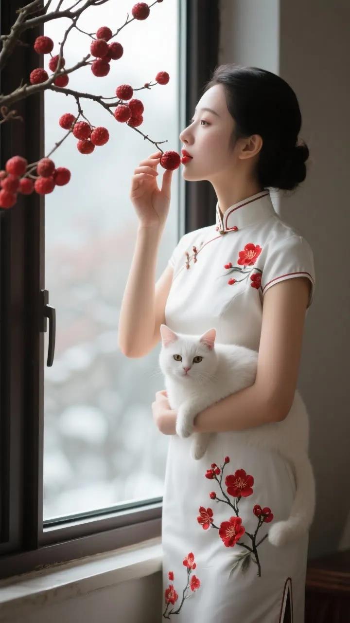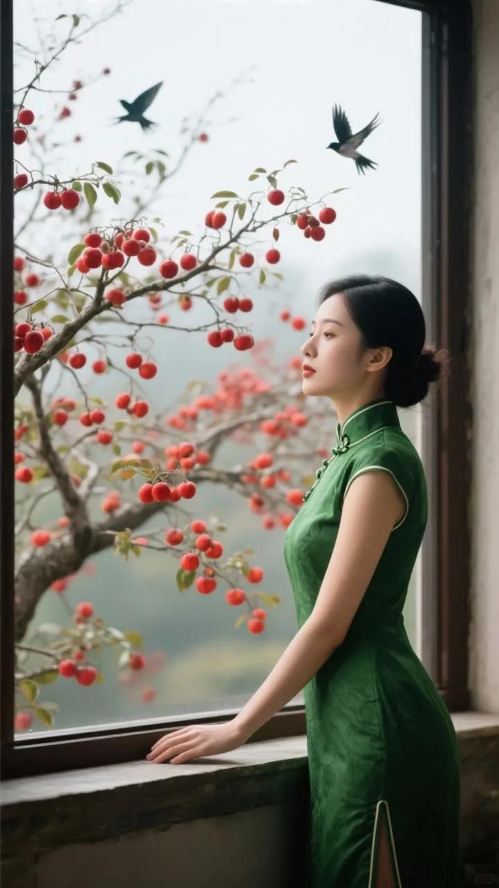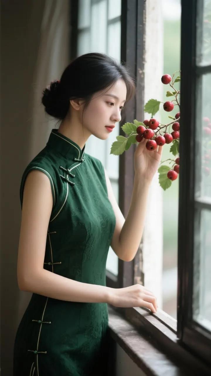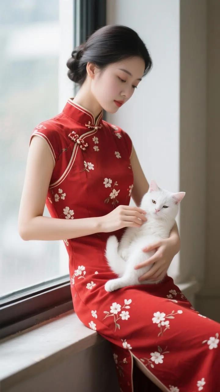 惊艳的东方美人,一袭红色旗袍,尽显古典优雅!