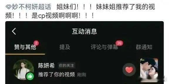 陈妍希推荐了与周柯宇的cp视频陈妍希推荐了和周柯宇的cp视频大方分享超吸粉!两人的cp视频里满是自然互动,陈妍希的推荐让这份美好被更多人知晓~