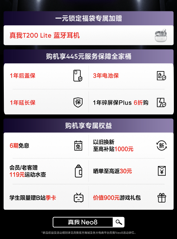 真我Neo8外观出来了,紫色骚气外漏,透明极客风+RGB灯回归,同档唯一XXX,同档唯一XXXX1元福袋可以冲,送TWS蓝牙耳机+1年后盖保+1年延长保+3年电池保,这不比手机性价比高?!