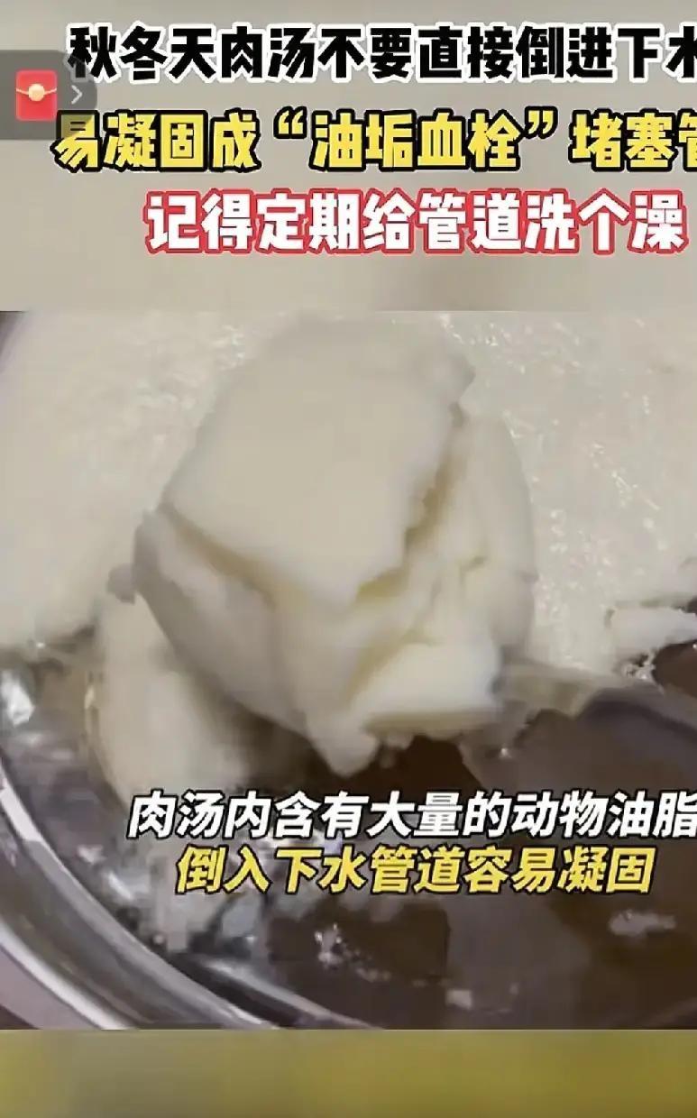 我把昨晚吃剩的牛油火锅汤倒进水池,开水冲了五分钟,今早洗碗池直接罢工。 物业小哥拆管掏出一坨奶黄色肥皂块,说是我昨晚的杰作。 他拿手机给我看,PVC管壁被油糊得只剩筷子粗的缝,高压水枪打上去像给石头洗澡。 我掏了三百块疏通费,还闻了十分钟隔夜涮肚味。 小哥说每年冬天都能掏出几十斤这种油砖,有人家堵到二楼,粪水倒灌把冰箱都泡了。 我当场把没用完的火锅底料扔进干垃圾袋,连红油都拿面包片吸干才扔。 油汤进水管就像给血管打黄油,天冷就心梗。 以后锅里剩油先放凉,厨房纸吸完再扔,多花两分钟,省得掏三百还闻臭味。