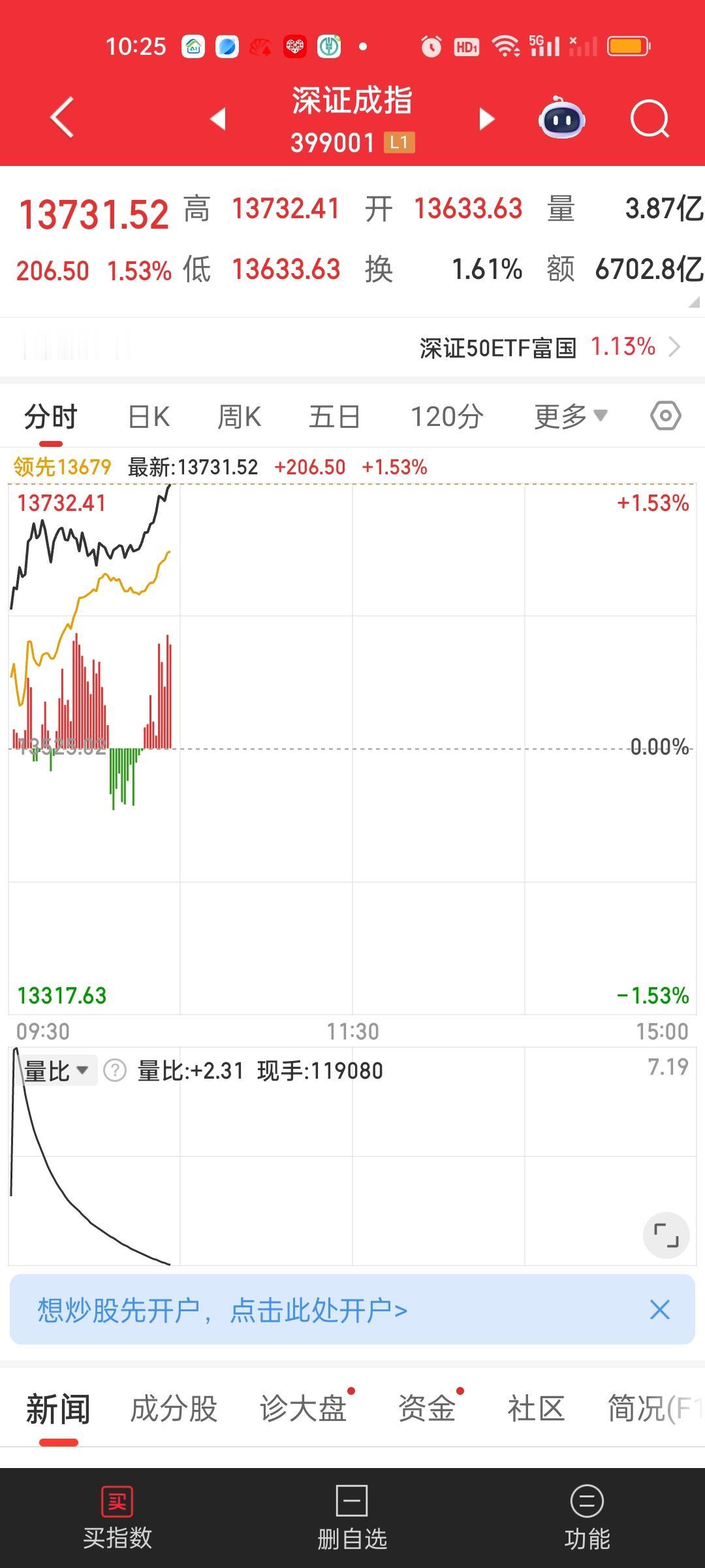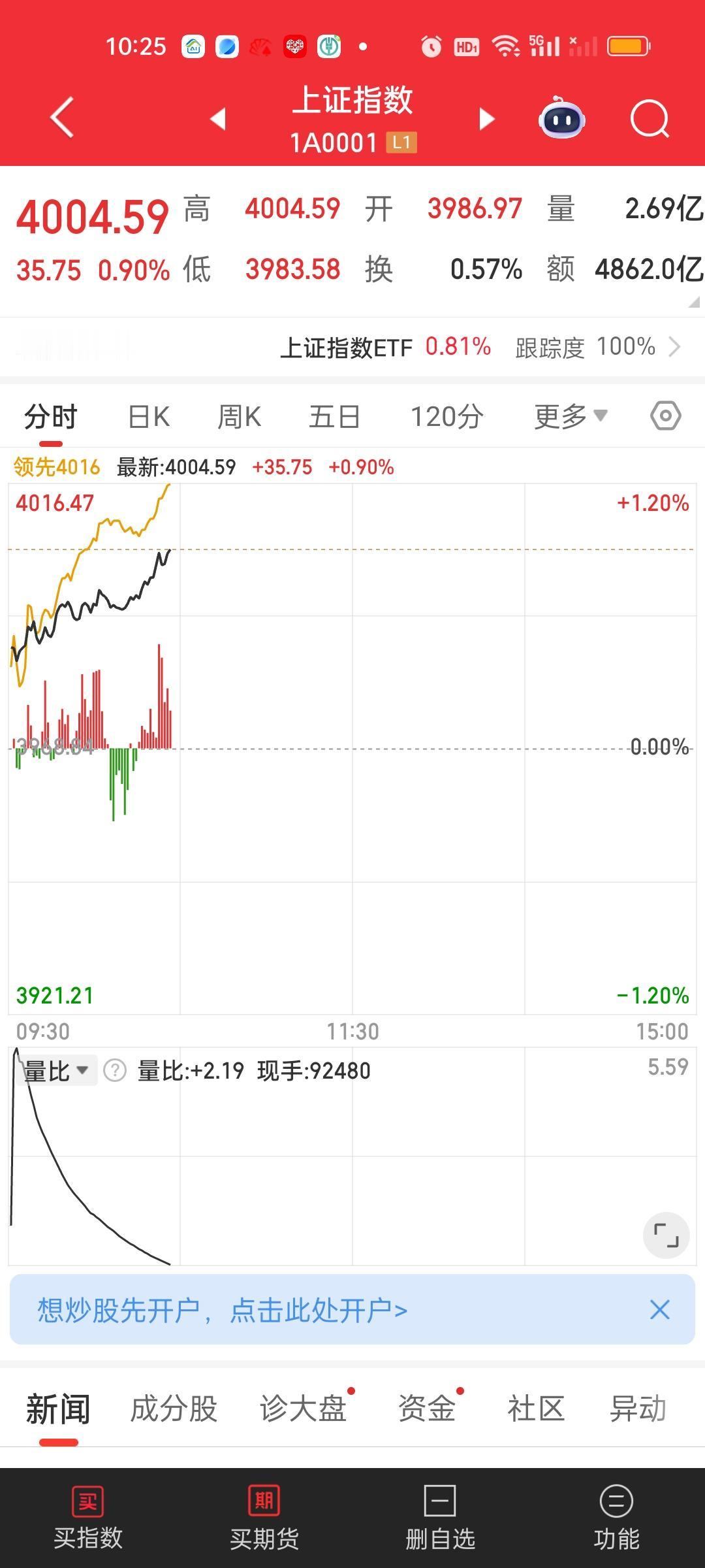 开盘只有50分钟,两市加起来有接近4000家股票上涨,成交量放量了接近2500亿。预计全天成交量可能要到25700亿。这么火爆的行情已经很长时间没有见到了,也注定了2026年股票市场会是极不平凡的一年,大家热情高涨,上面自然是喜闻乐见。