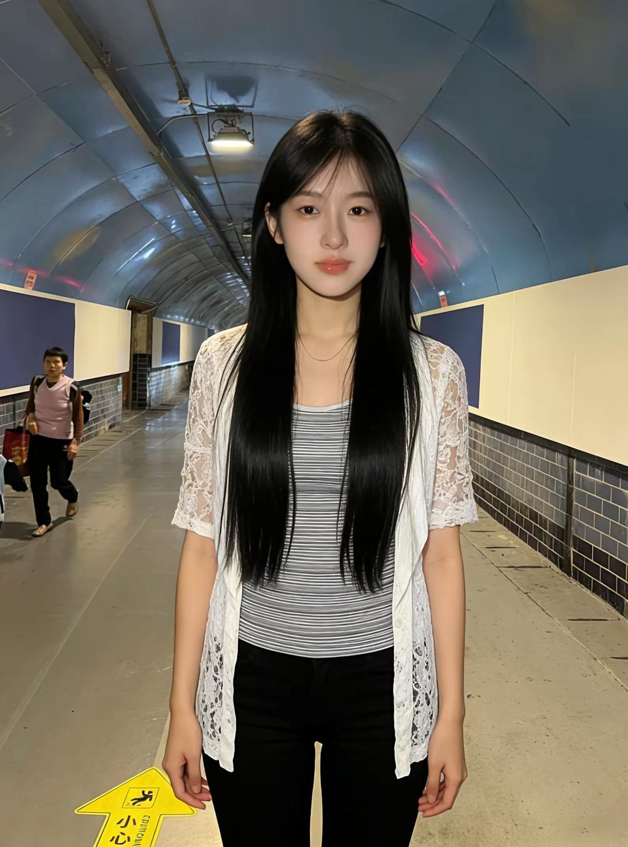 地铁站的少女,黑白条纹与蕾丝的完美搭配,简约时尚!黑白裙子穿搭