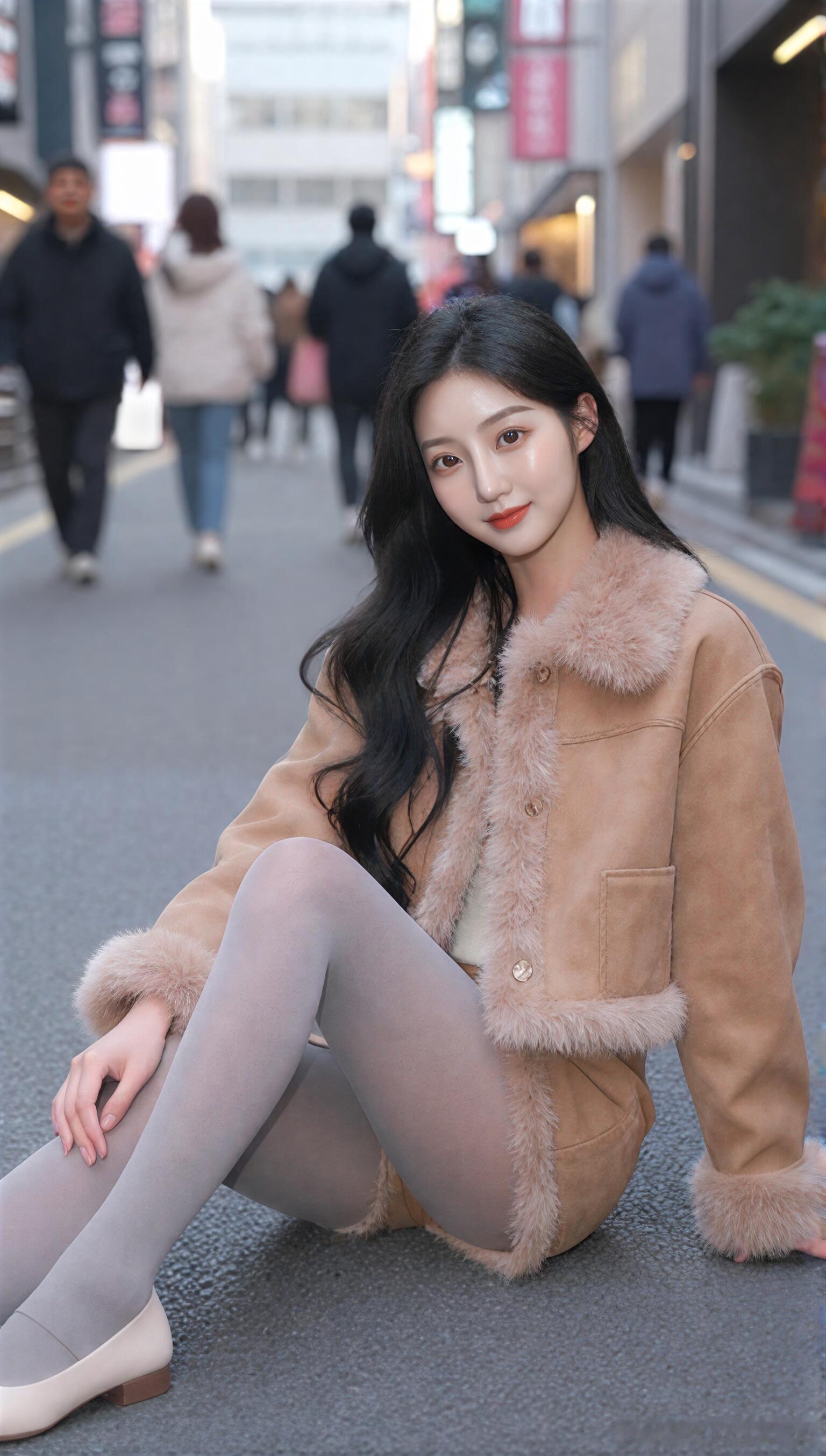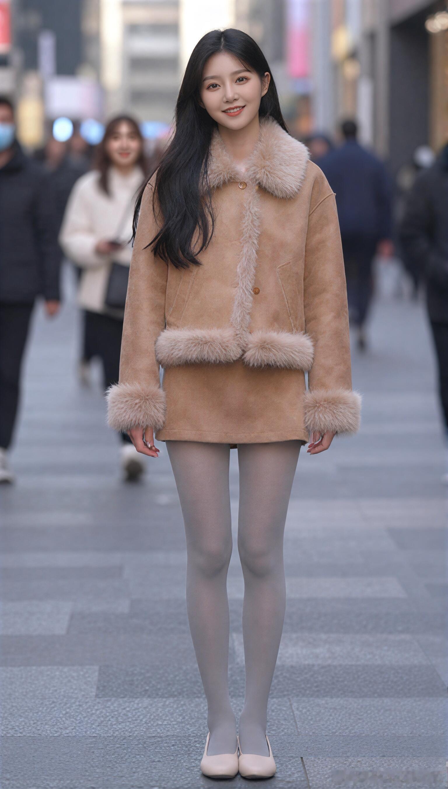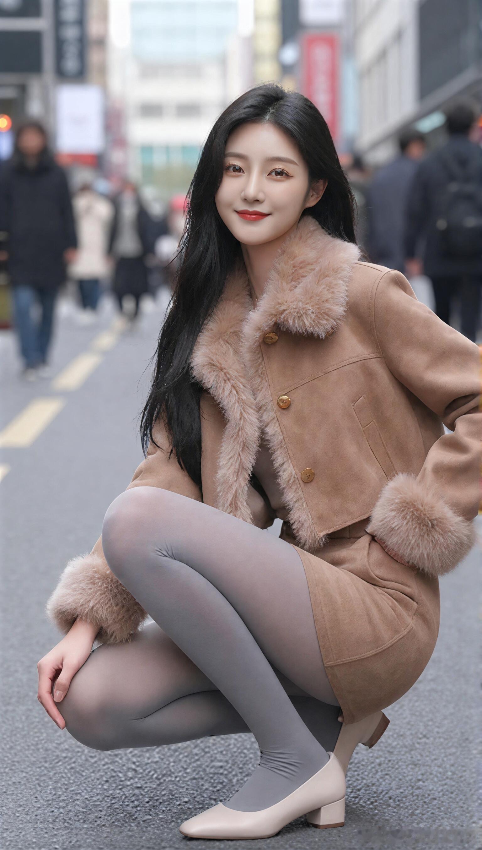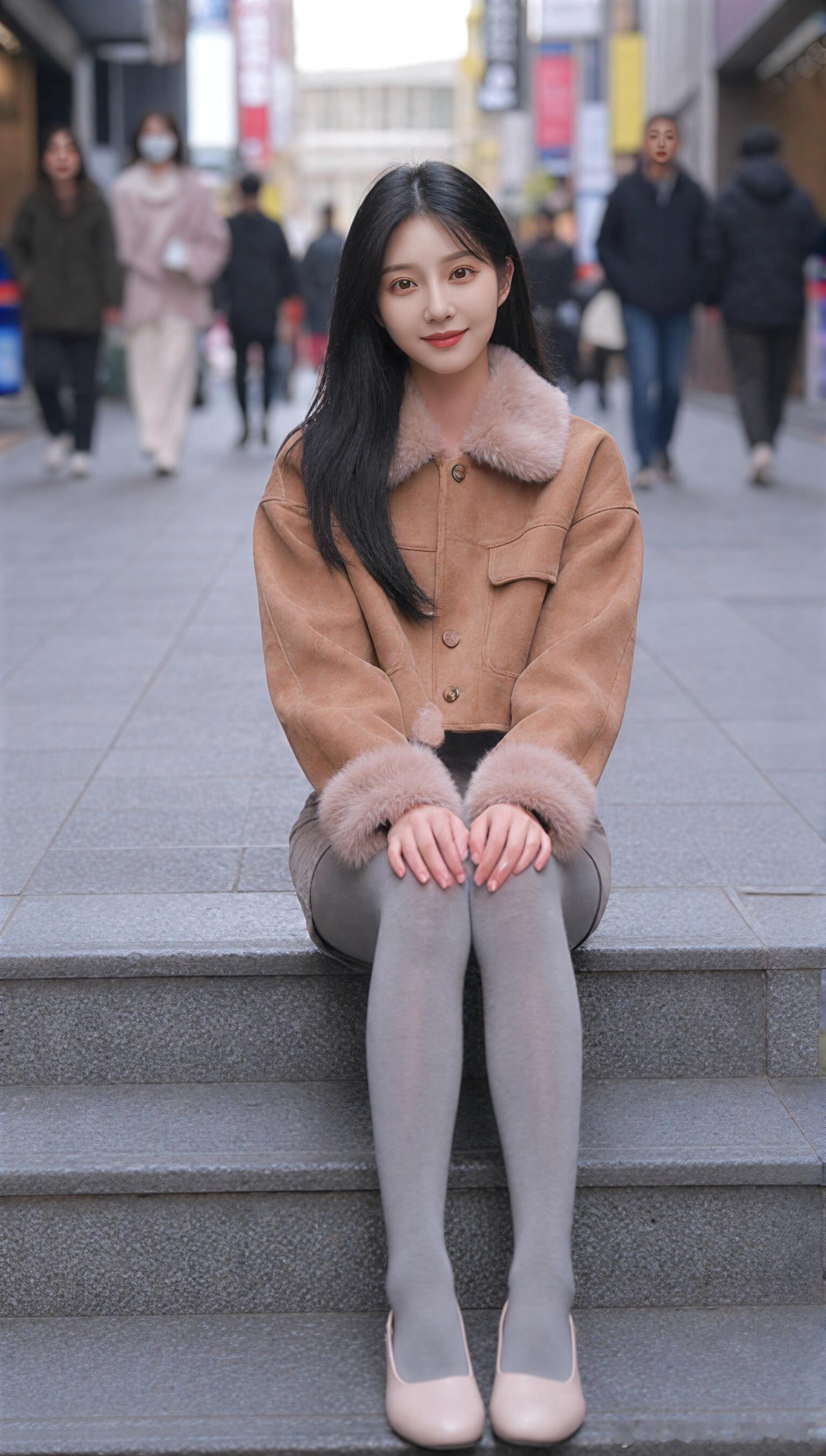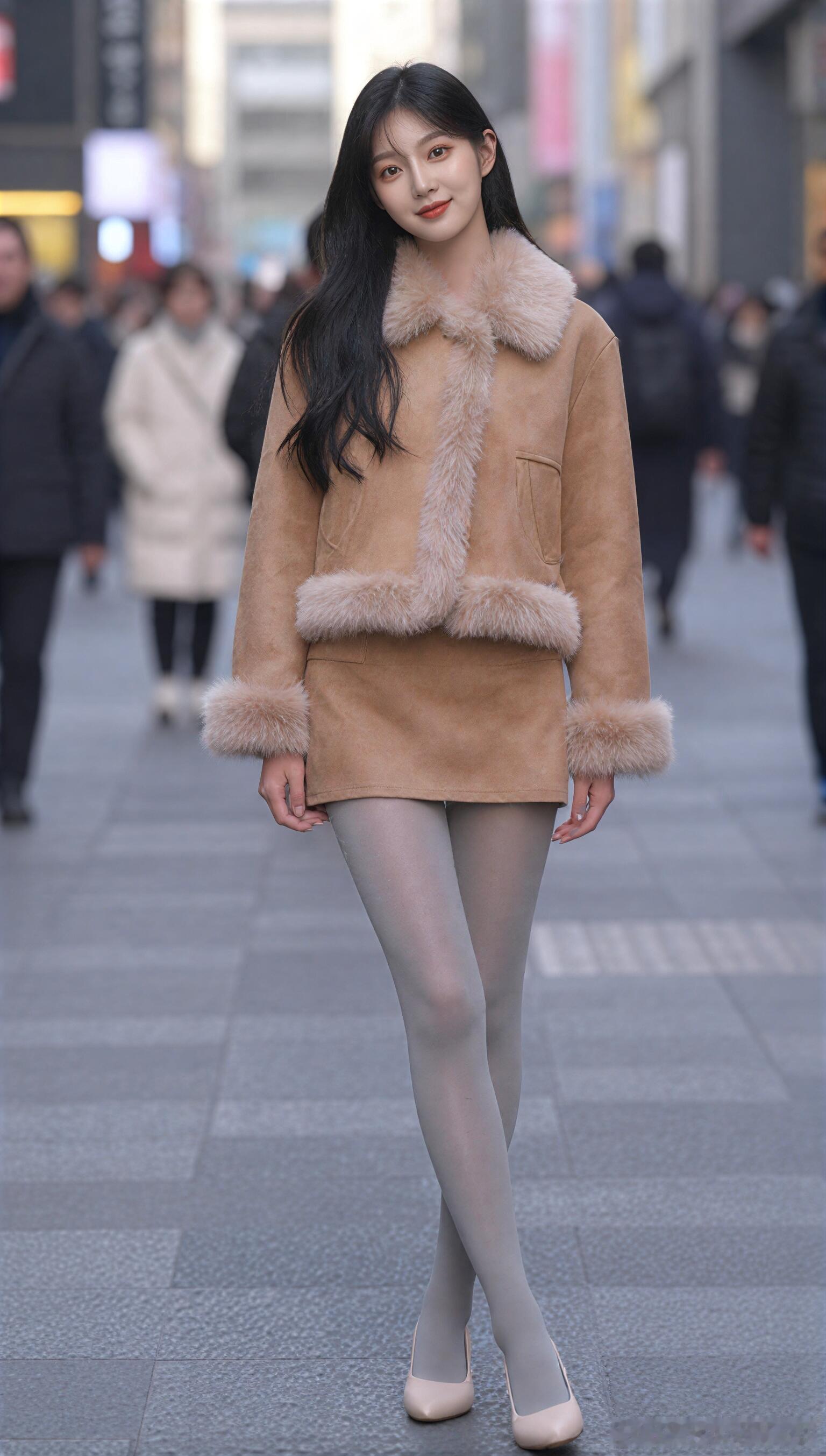 浅灰丝袜 + 裸色单鞋,温柔得像裹了层焦糖拿铁~