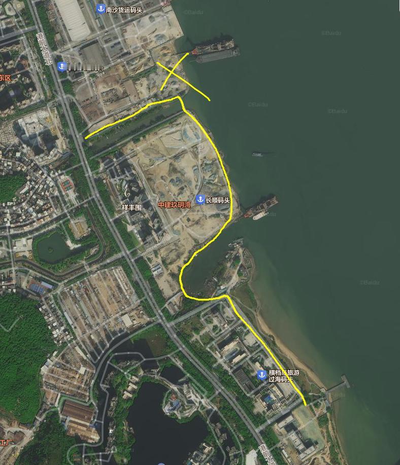 【南沙湾滨海岸线贯通项目二期来了!某沙场终于要搬了吗?】早前在港湾街道的调研努力下,南沙湾板块多年断头不通的海岸线终于贯通,现在这个南沙湾滨海岸线贯通将继续。 南沙新区明珠湾开发建设管理局发布南沙湾滨海岸线贯通项目(二期)招标计划,对南沙湾滨海岸线贯通项目(二期)设计施工总承包进行公开招标。项目预计将于2026年2月发标。项目工程费用约15900万元,总投资估算约 18600 万元。 从招标公告可以看到,该项目建设内容主要包括在已建南沙湾滨海贯通项目的基础上,进一步完善“山海相连”慢行系统,以虎门大桥桥底为节点,向西连通黄山鲁公园东门,向北延伸至政法基地并贯通至虎门渡口的通道,同步提升沿线整体风貌。 可以看到这个项目分成了两条线路,一条是从虎门大桥桥底向西到黄山鲁公园东门,一条则是往北到虎门渡口。主要是绿化工程。 其中西线本来规划是要建设山海公园的,会建设一个南沙版的云道,采用架空匝道的方式连接海边和黄山鲁。不过这个项目早前已经取消了,有点可惜。 而北线的话目前不知道具体会走港前大道还是走海边,如果走海边的话,那么还是值得期待的话,意味着目前围蔽的南沙法院对出的网红小沙滩有望再次开放,另外某楼盘业主一直吐槽的大型沙场也应该是要搬迁才能进行。不过个人觉得不太可能走岸边,毕竟要搞的话项目太大了点,货运码头那边也是没办法贯通。因此个人猜测应该还是走港前大道的东侧。 感觉港前大道北这块条件真的是很不错的,有3个小湾口,值得好好规划起来。不过历史遗留项目太多,需要时间来消化了! 而关于港前大道北这个板块,早年前还有一个高大上的规划,现在看来应该又是已经成为ppt了。一起来回味一下吧!